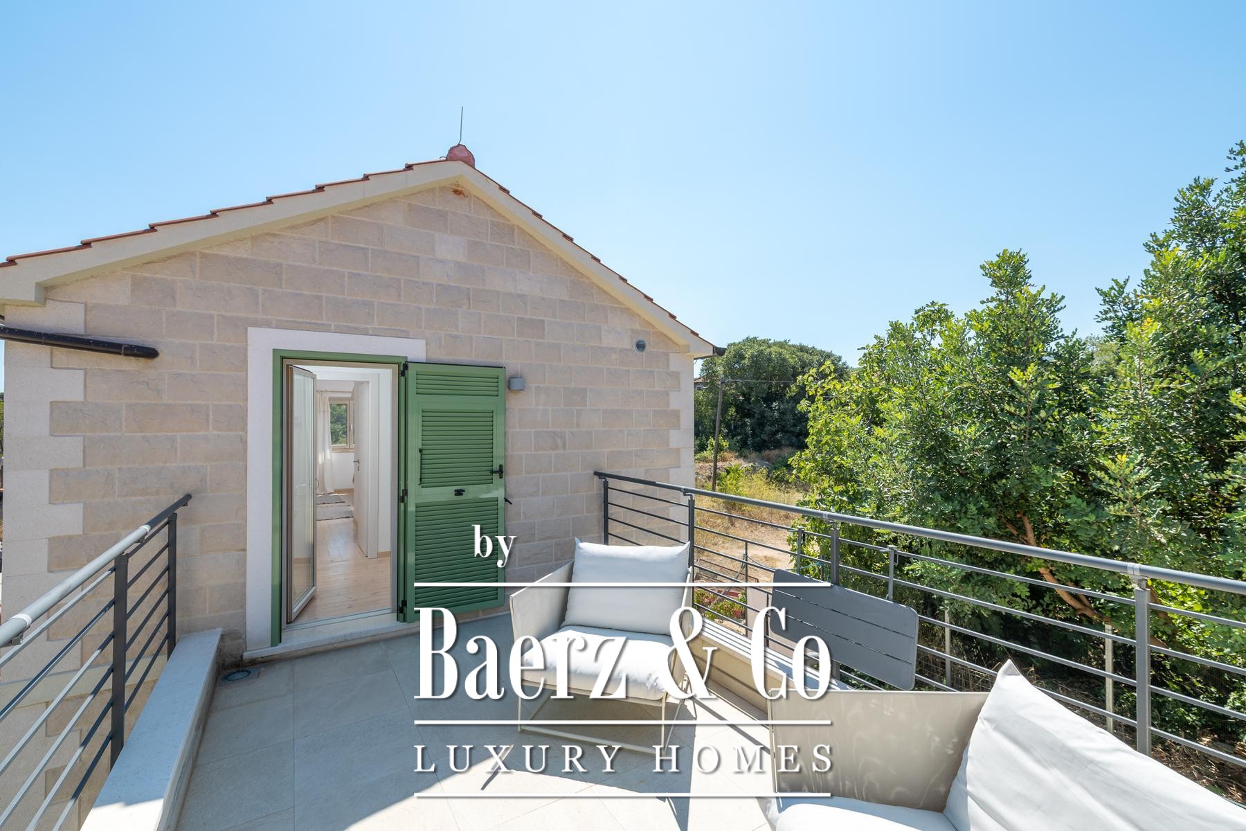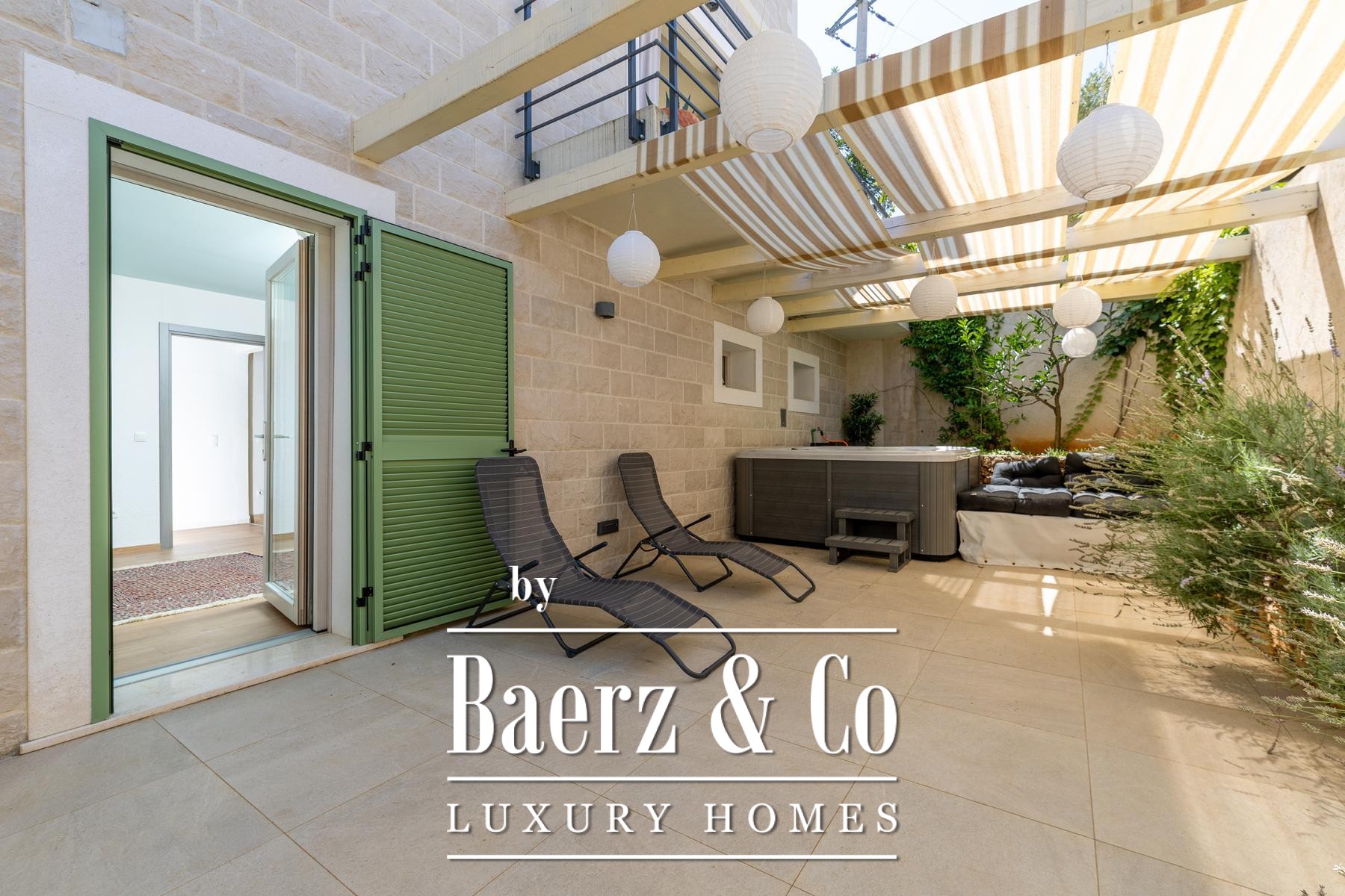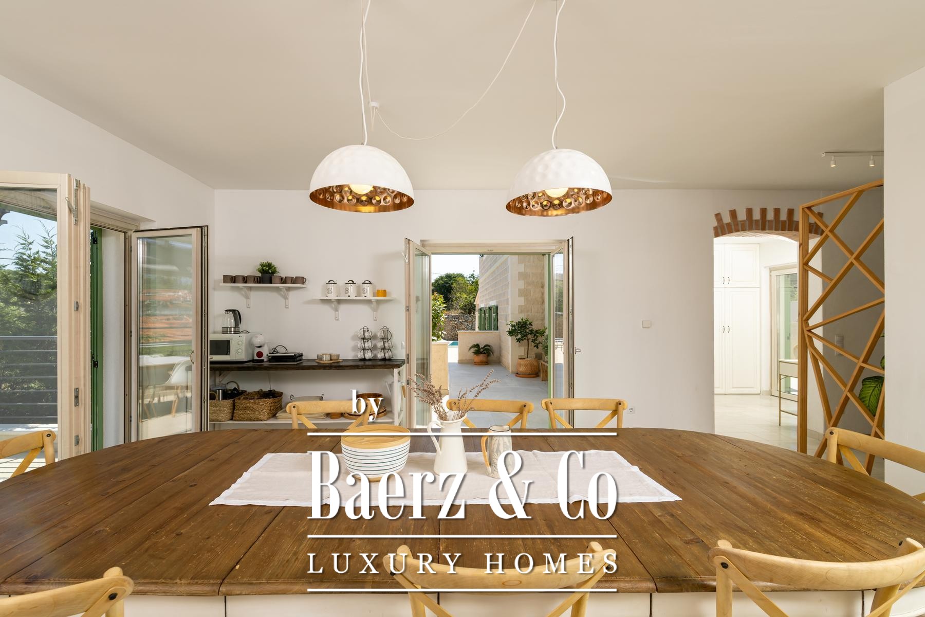 Vanuit de entree loopt u door naar een eigentijdse keuken en een extra zomerkeuken; samen met een royaal terras van 24 m² en een terras met zwembad vormt dit de ideale setting voor privé-bijeenkomsten of serene rust. Op de eerste verdieping zijn drie slaapkamers, elk met een eigen badkamer, een inloopkast en een flexibele studio, alle met toegang tot ruime terrassen.