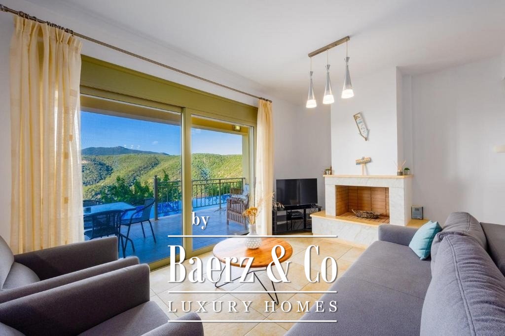 Deze luxe villa in Lefkada bevindt zich in een rustige enclave in het zuiden van Lefkada en combineert ingetogen elegantie met een panoramisch uitzicht op zee, bergen en het weelderige landschap. Op slechts een steenworp afstand van het strand van Mikros Gialos, bekend om zijn heldere water en authentieke taverna’s, biedt deze woning een toevluchtsoord dat wordt overspoeld door natuurlijk licht dankzij de zuidelijke en zuidoostelijke oriëntatie.