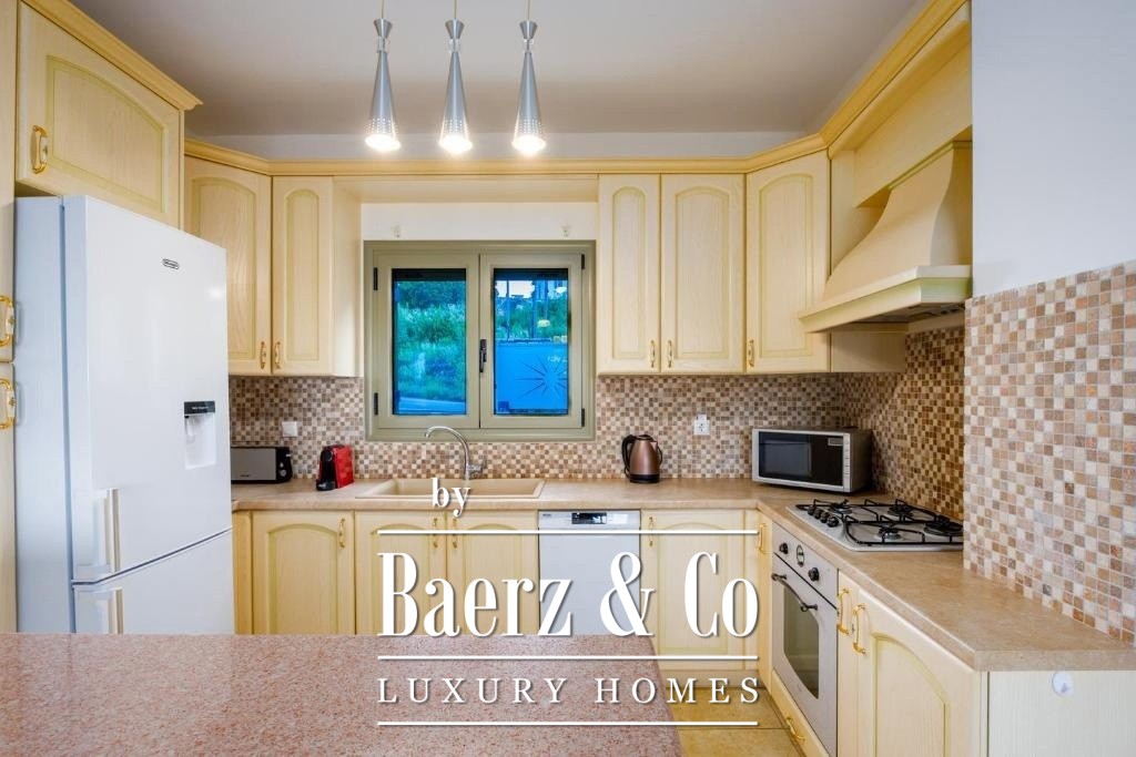 Buiten bieden het infinity zwembad, de barbecue, aromatische tuinen en diverse eet- en loungeplekken een setting om te genieten. Kenmerken zijn onder meer autonome verwarming met fan coil, airconditioning, een zonneboiler, dubbele beglazing in aluminium kozijnen en privéparkeerplaatsen voor twee auto's. Deze villa nodigt uit tot een leven van discrete verfijning, dicht bij het zeldzame natuurlijke erfgoed van Lefkada.