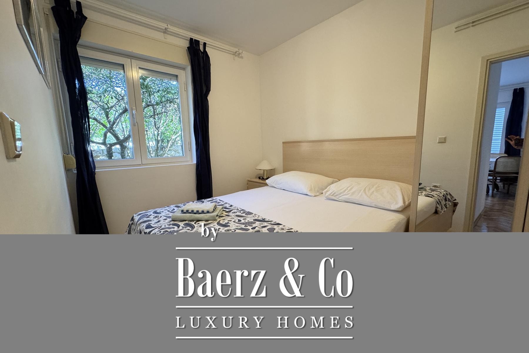 apartment consists of a bedroom, bathroom, kitchen, living room and terrace.Another additional apartment is located in the basement of the house and has two bedrooms, a kitchen, a bathroom and a storage room.There is also a garage in the yard of the house, and the garden itself is full of beautiful Mediterranean plants.Four more cars can be parked in the yard.For any additional information, feel free to contact us!