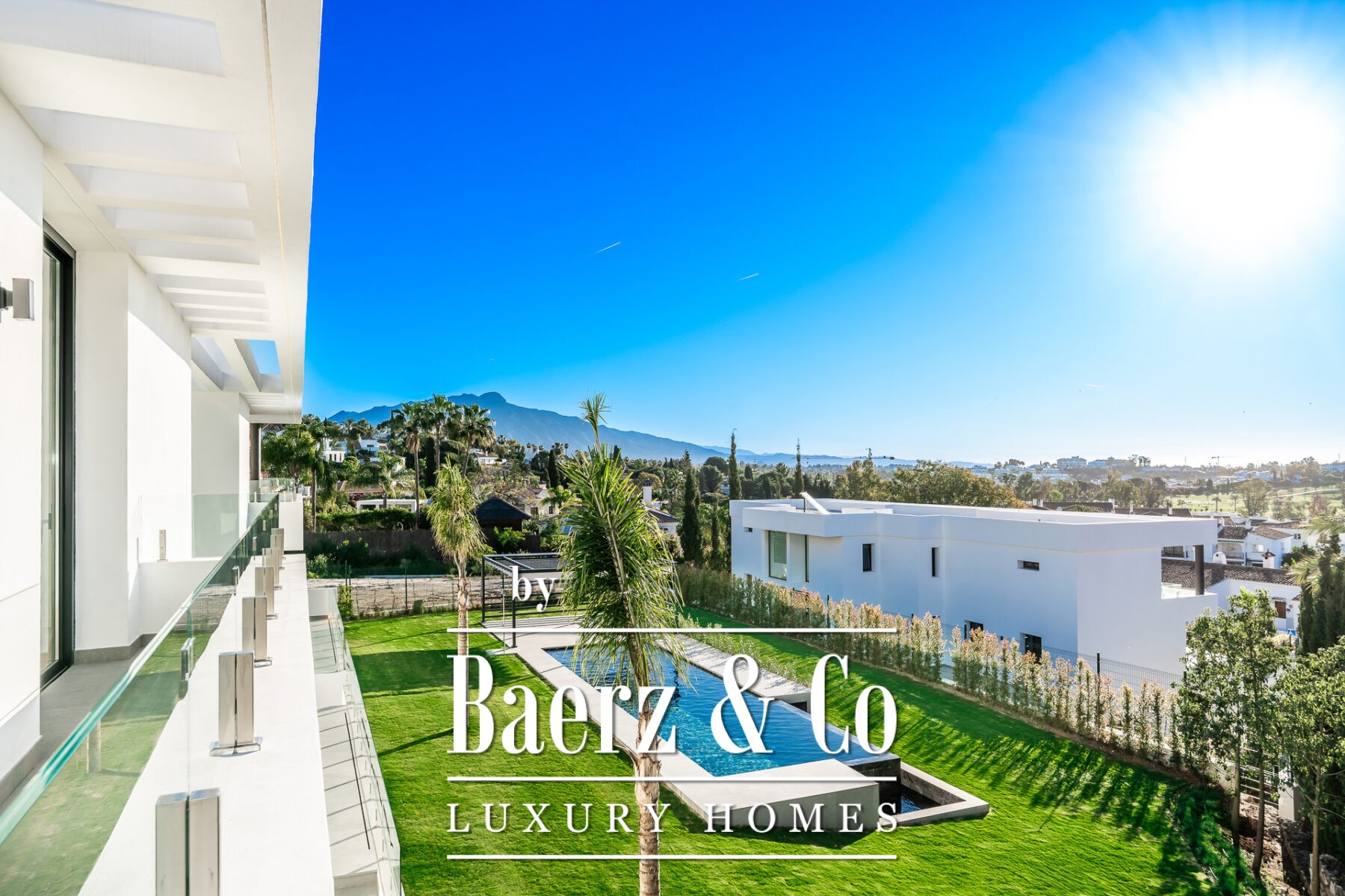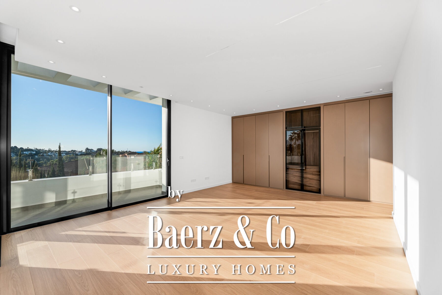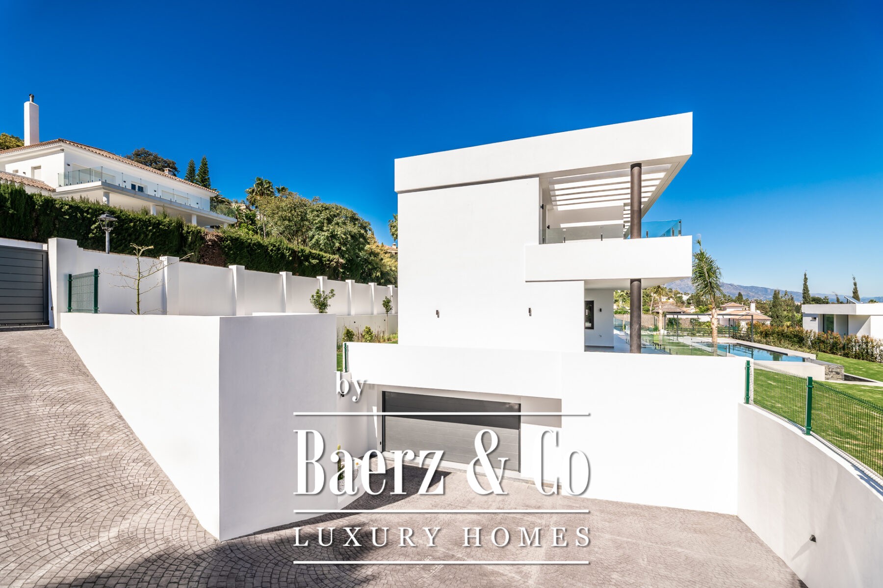 Welcome to the villa of your dreams in the prestigious Paraíso Alto area of Benahavís, where luxury and sophistication merge with cutting-edge technology and design. Completed in February 2025, this unique property combines brilliant architecture with innovation and elegance in every detail. Set on a spacious 1,915 m² plot, the villa offers 1,038 m² of built area across three levels, designed to ensure comfort, privacy, and exclusivity. Upon entering, you are greeted by an atmosphere of grandeur, with double-height ceilings and floor-to-ceiling windows that flood the spaces with natural light and create a seamless connection between indoors and outdoors. The villa features 6 en-suite bedrooms and a guest toilet, all designed with refined style to accommodate both family and guests. The living and dining areas are spacious and versatile, perfect for social gatherings or intimate family moments. The state-of-the-art open-plan kitchen, equipped with premium appliances, elevates the culinary experience to the highest level. The lower floor is a true sanctuary of leisure and wellness, with a wine cellar, private spa, Finnish and Turkish saunas. It includes a staff apartment and has a space