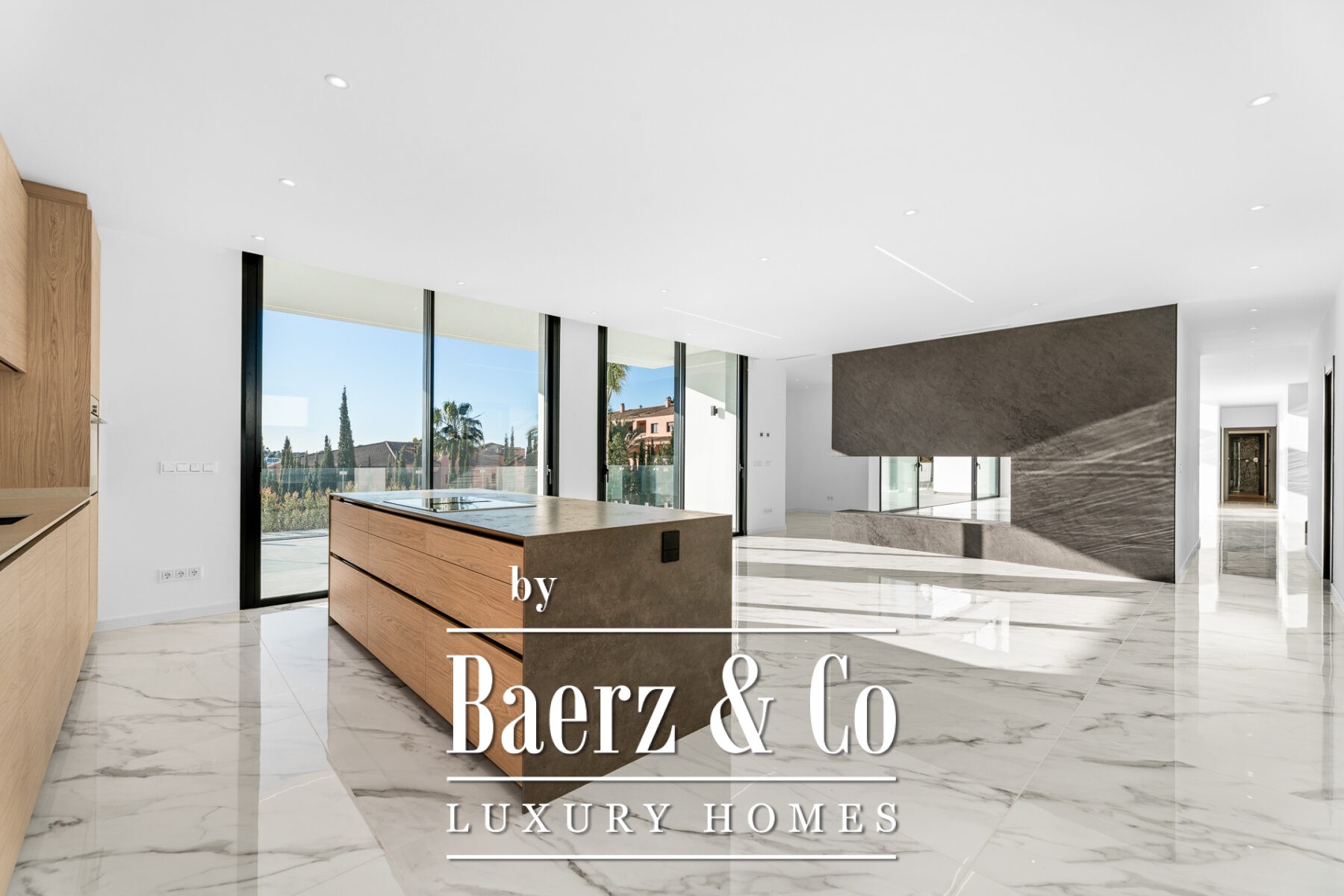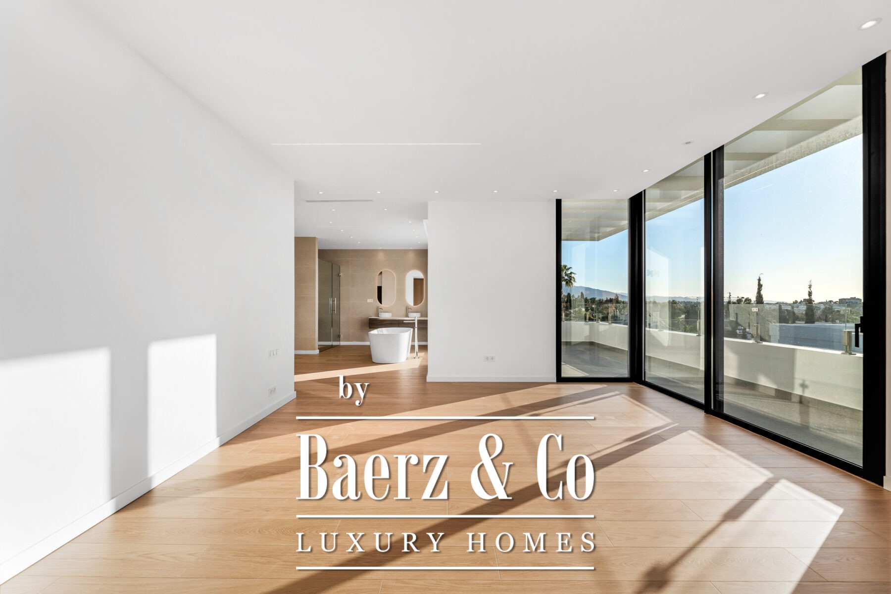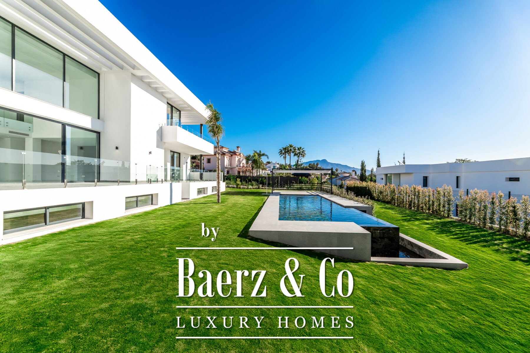 Welcome to the villa of your dreams in the prestigious Paraíso Alto area of Benahavís, where luxury and sophistication merge with cutting-edge technology and design. Completed in February 2025, this unique property combines brilliant architecture with innovation and elegance in every detail. Set on a spacious 1,915 m² plot, the villa offers 1,038 m² of built area across three levels, designed to ensure comfort, privacy, and exclusivity. Upon entering, you are greeted by an atmosphere of grandeur, with double-height ceilings and floor-to-ceiling windows that flood the spaces with natural light and create a seamless connection between indoors and outdoors. The villa features 6 en-suite bedrooms and a guest toilet, all designed with refined style to accommodate both family and guests. The living and dining areas are spacious and versatile, perfect for social gatherings or intimate family moments. The state-of-the-art open-plan kitchen, equipped with premium appliances, elevates the culinary experience to the highest level. The lower floor is a true sanctuary of leisure and wellness, with a wine cellar, private spa, Finnish and Turkish saunas. It includes a staff apartment and has a space