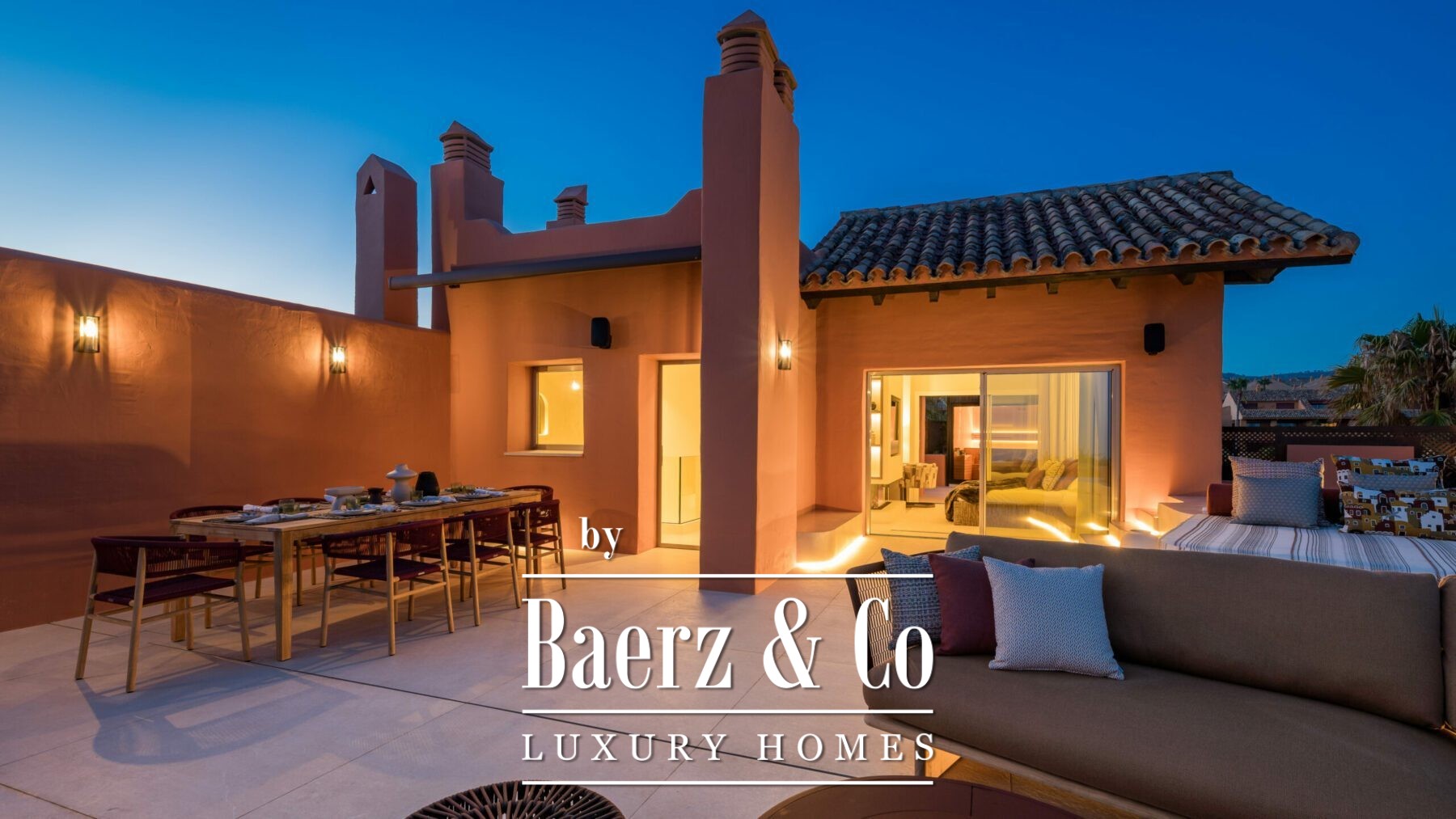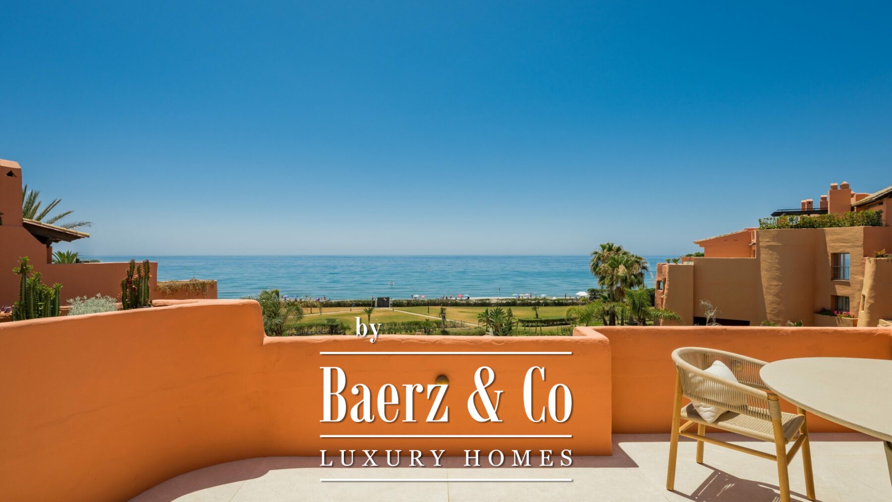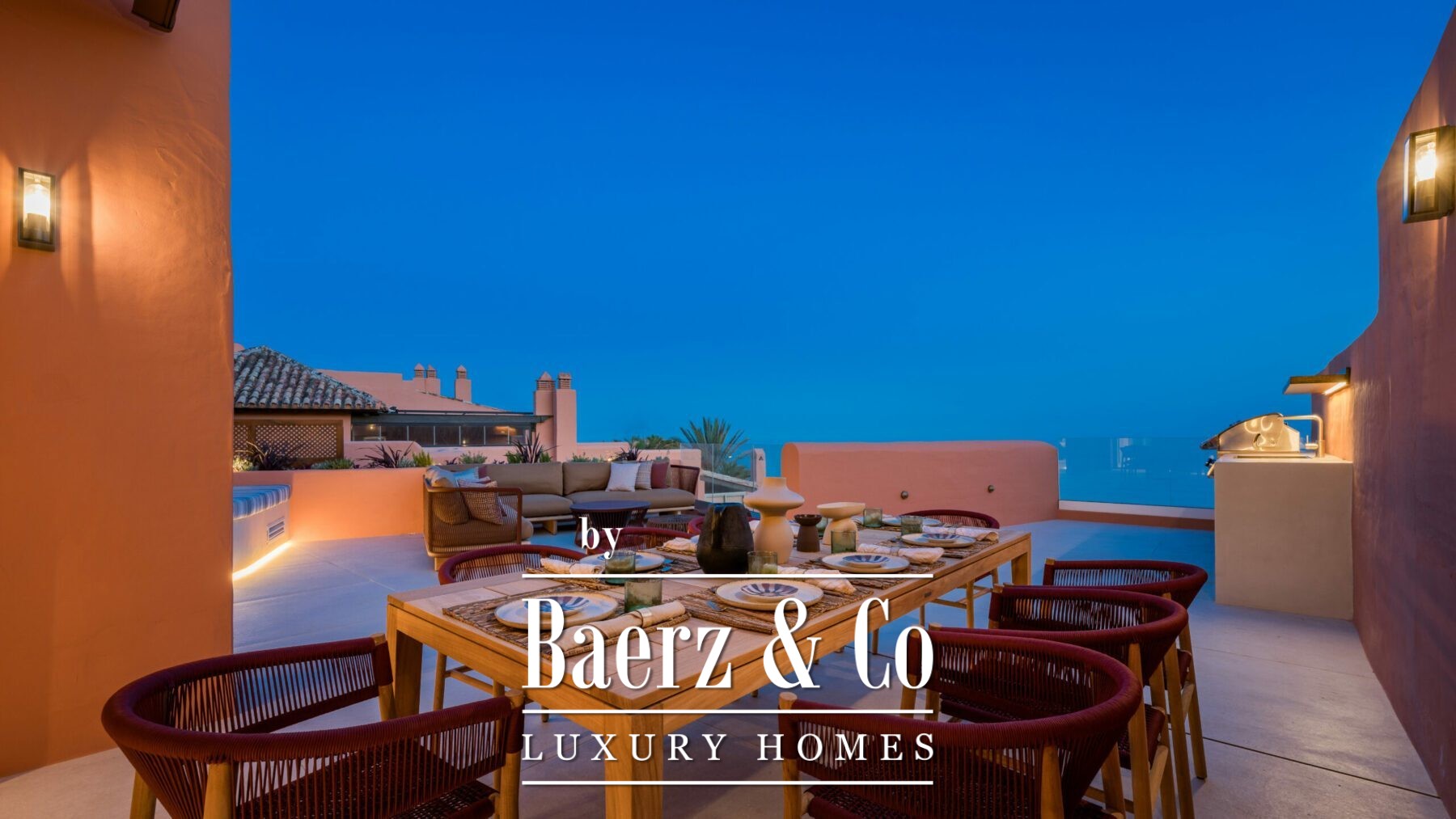 This outstanding property impresses with an exclusive interior design, elegant contemporary furniture, tailormade wardrobes, a new Siematic designer kitchen with Miele appliances, a Bang & Olufsen sound system, an electric fire place and stylish Kettal outdoor furniture. From both terraces you can enjoy the true beauty of a frontline beach location, with sea views that follow the shoreline and Mediterranean to the outlines of Gibraltar and North Africa. The penthouse comes with 2 underground parking spaces and a storage room.