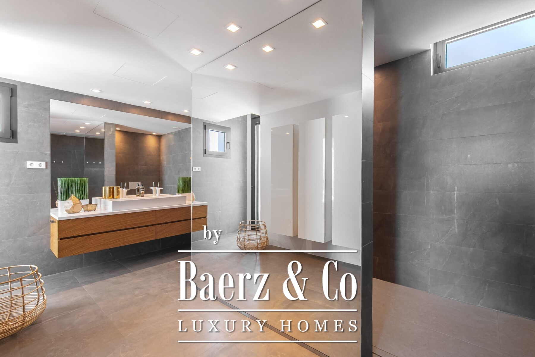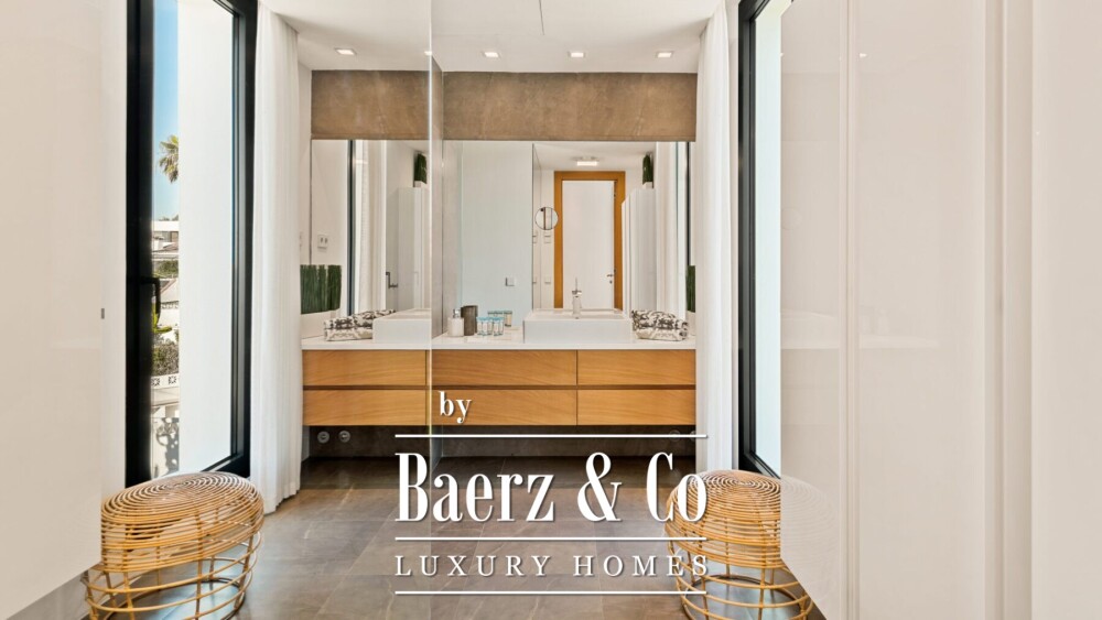 Op de eerste verdieping ligt de master suite met dubbele inbouwkasten, een en-suite badkamer en toegang tot het terras. Twee extra slaapkamers delen een terras en een badkamer. Het dakterras biedt panoramisch uitzicht, een pergola en een rooftop gym. In het souterrain bevinden zich twee natuurlijke verlichte slaapkamers, een wellnessruimte met jacuzzi, sauna, stoombad en praktische berging. Elke verdieping is bereikbaar via een lift en eikenhouten trap met glazen balustrades. Deze villa beschikt over zowel een woonvergunning (LPO) als verhuurlicentie, en ligt op korte afstand van de golfbanen en voorzieningen van Marbella, voor een ongeëvenaarde levensstijl direct aan de Middellandse Zee.