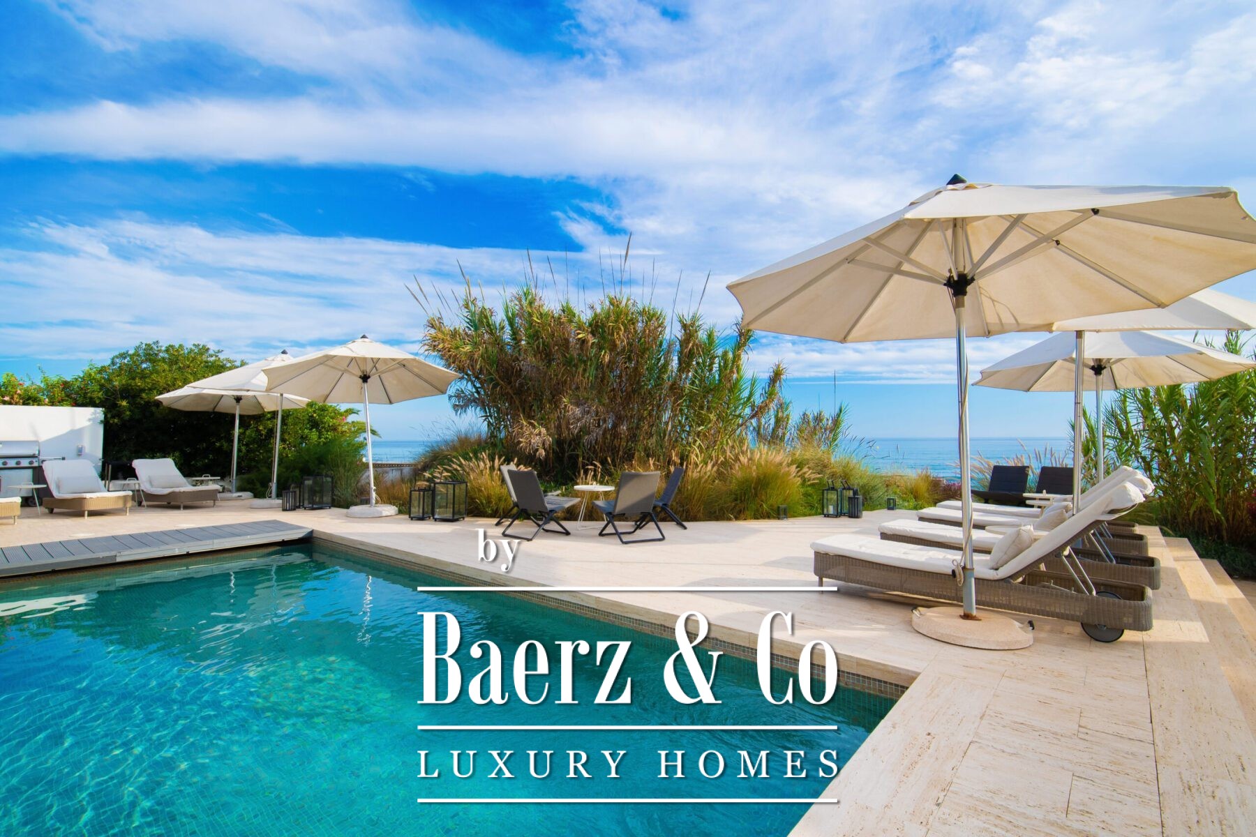 De strandvilla Marbella East ligt direct aan het goudgele zand en is recent gebouwd volgens de hoogste standaarden door een gerenommeerd architect uit Marbella. Deze woning van 382 m² beschikt over zes slaapkamers en vijf badkamers. Het moderne ontwerp combineert hout, glas, steen en beton tot een sfeer van moeiteloze elegantie en optimale privacy. De zuidwestelijke ligging biedt vanaf elk terras uitzicht op zee en spectaculaire zonsondergangen.