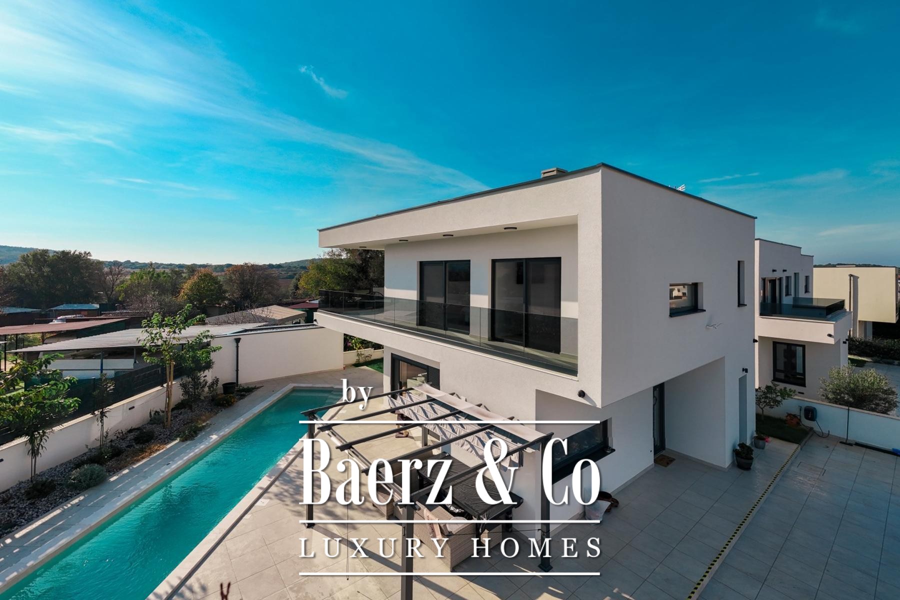 Moderne villa Medulin combineert eigentijds design met mediterrane rust in de prestigieuze wijk Volme. Op slechts vijf minuten wandelen van de kristalheldere zee beslaat deze nieuwbouw 190 m² op een fraai aangelegd perceel van 500 m² en biedt daarmee een inspirerende kustlevensstijl in Kroatië.