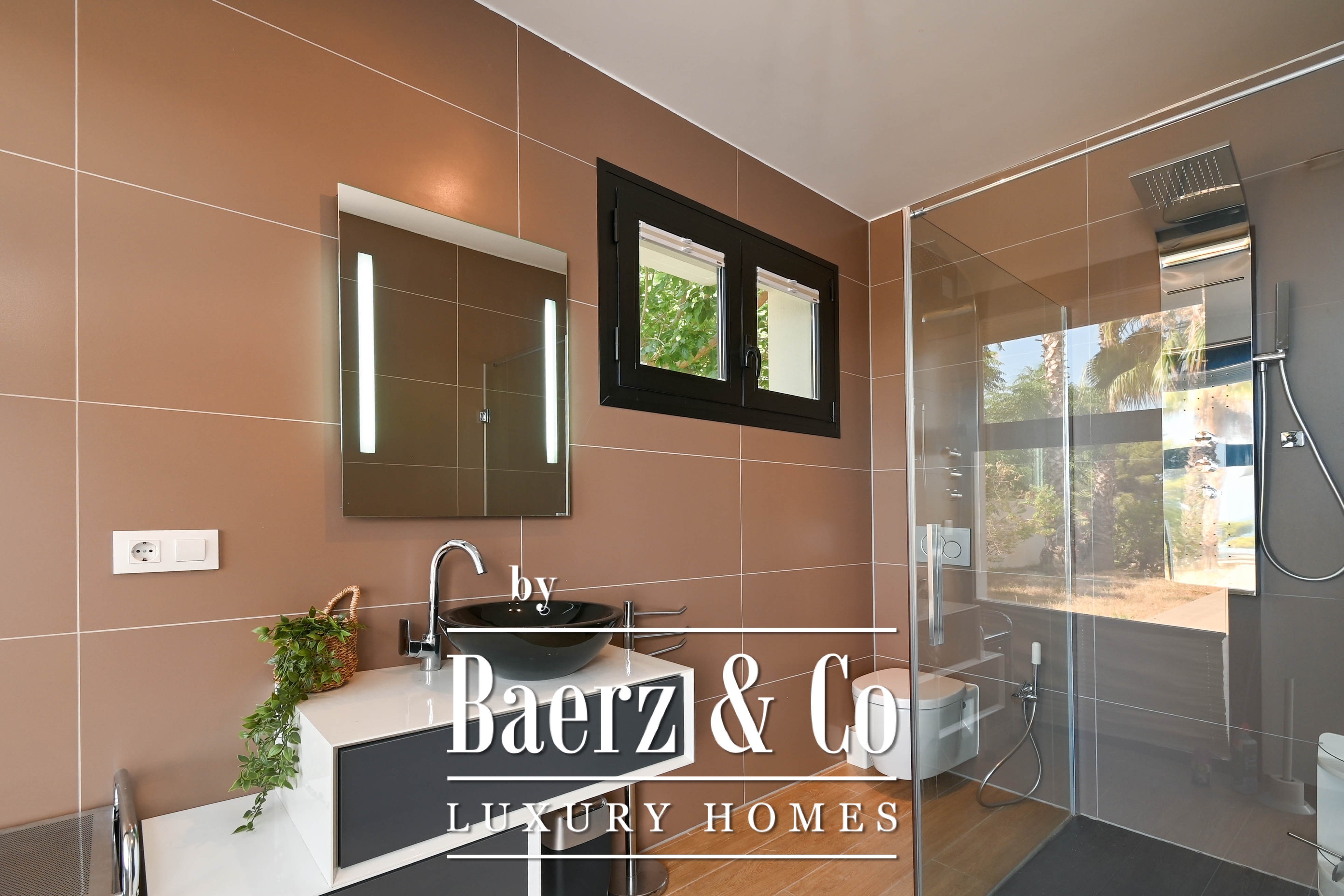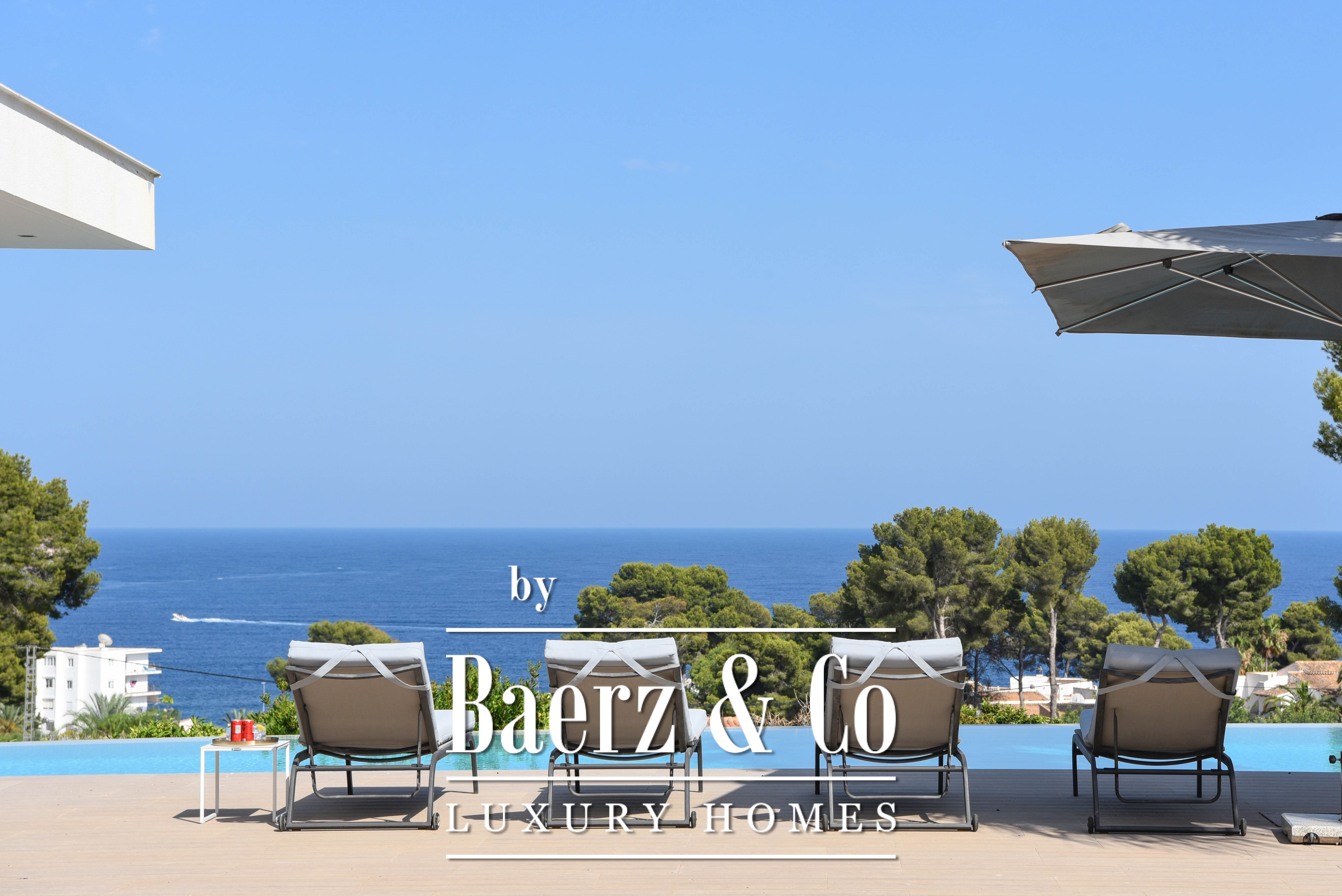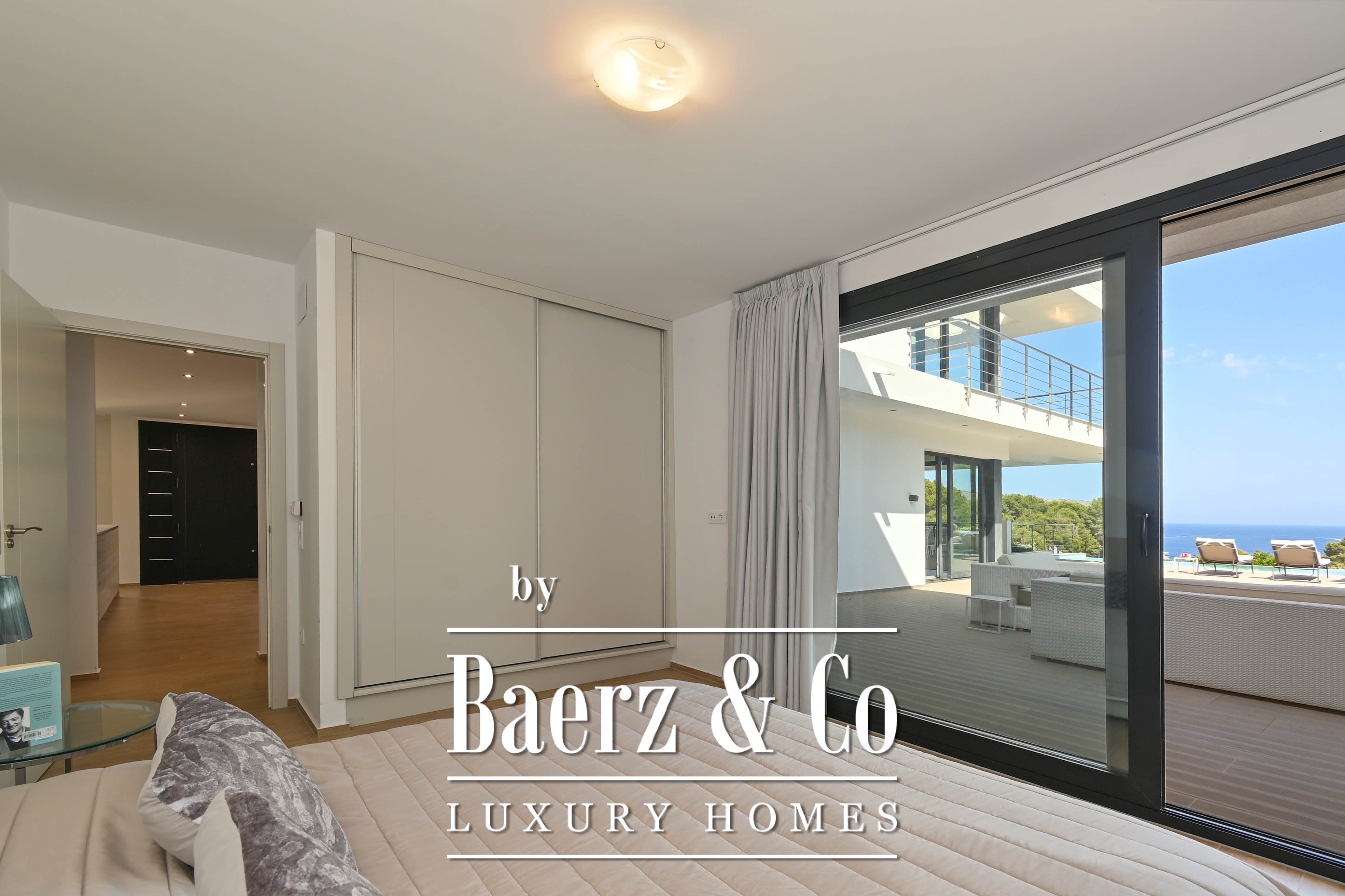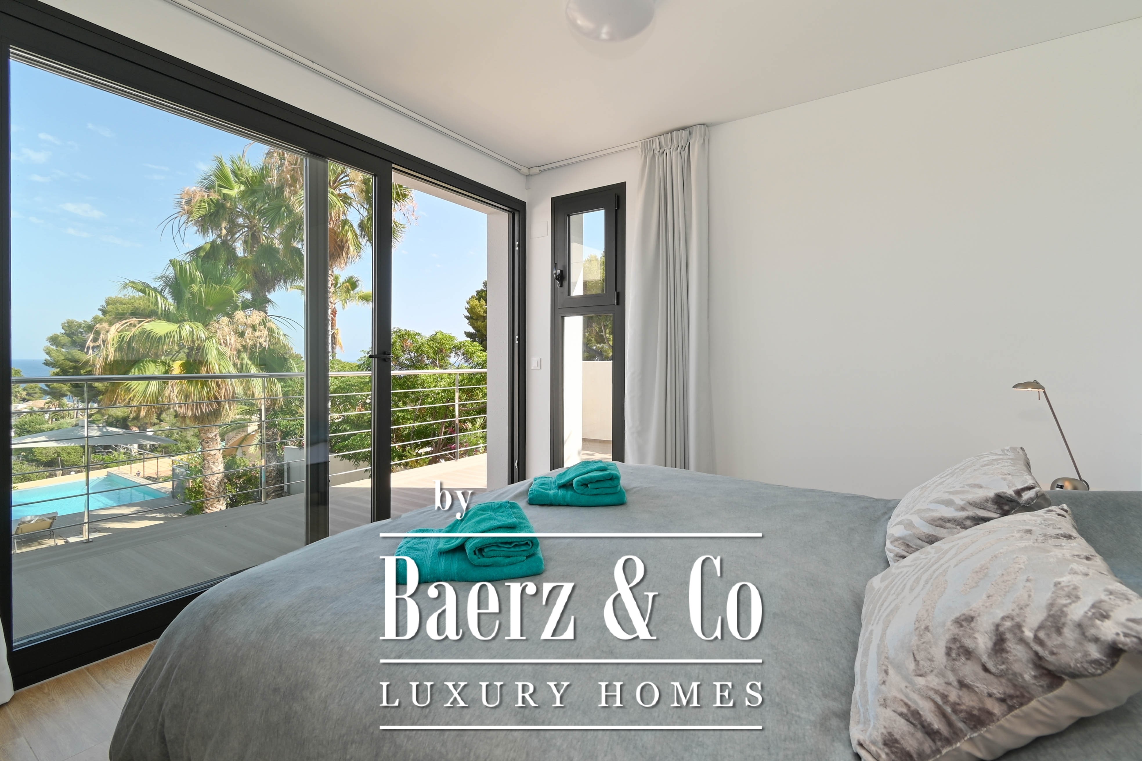 Buiten geniet je van een ruim terras, een uitnodigend zwembad en uiteraard het spectaculaire uitzicht op de Middellandse Zee. De dubbele garage zorgt voor extra comfort en bergruimte.