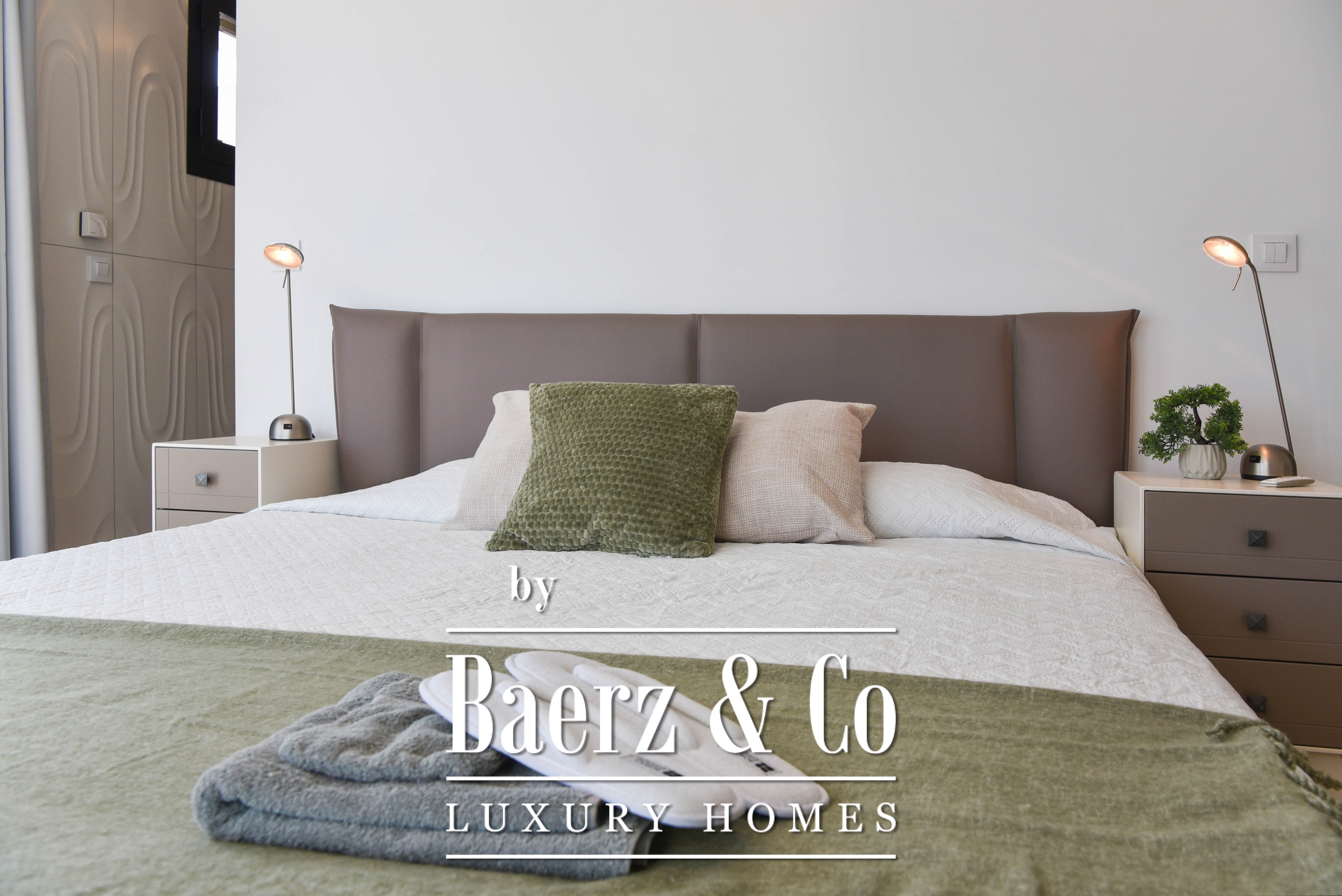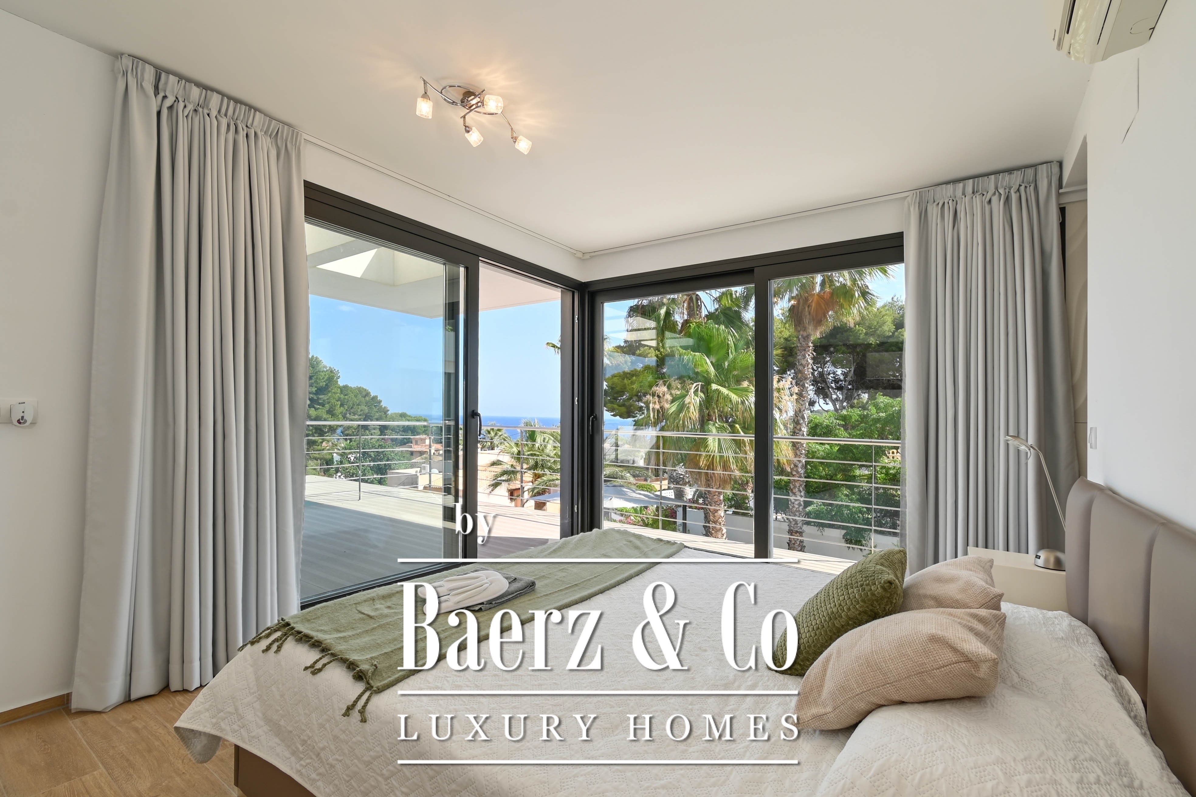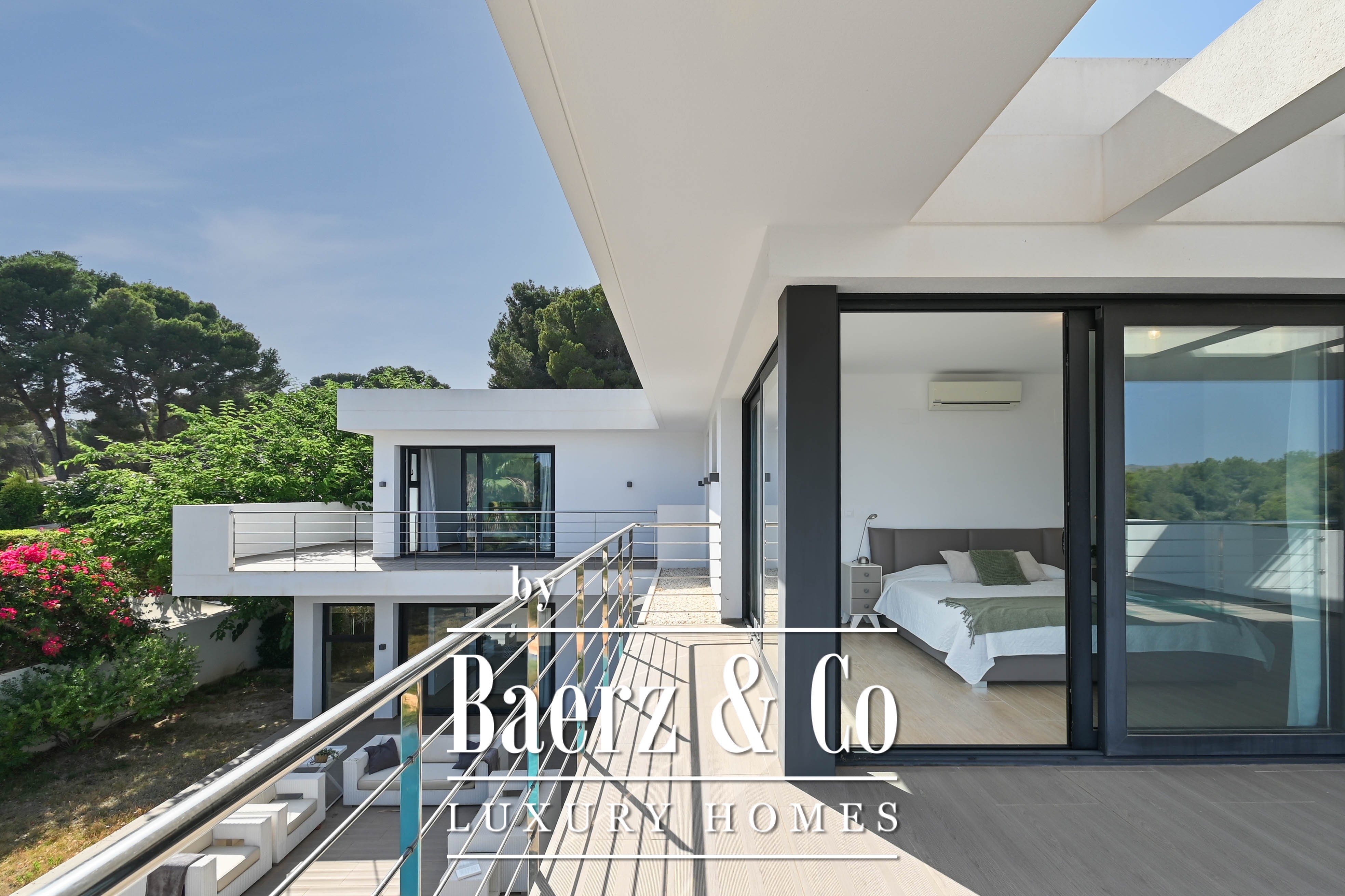 Buiten geniet je van een ruim terras, een uitnodigend zwembad en uiteraard het spectaculaire uitzicht op de Middellandse Zee. De dubbele garage zorgt voor extra comfort en bergruimte.