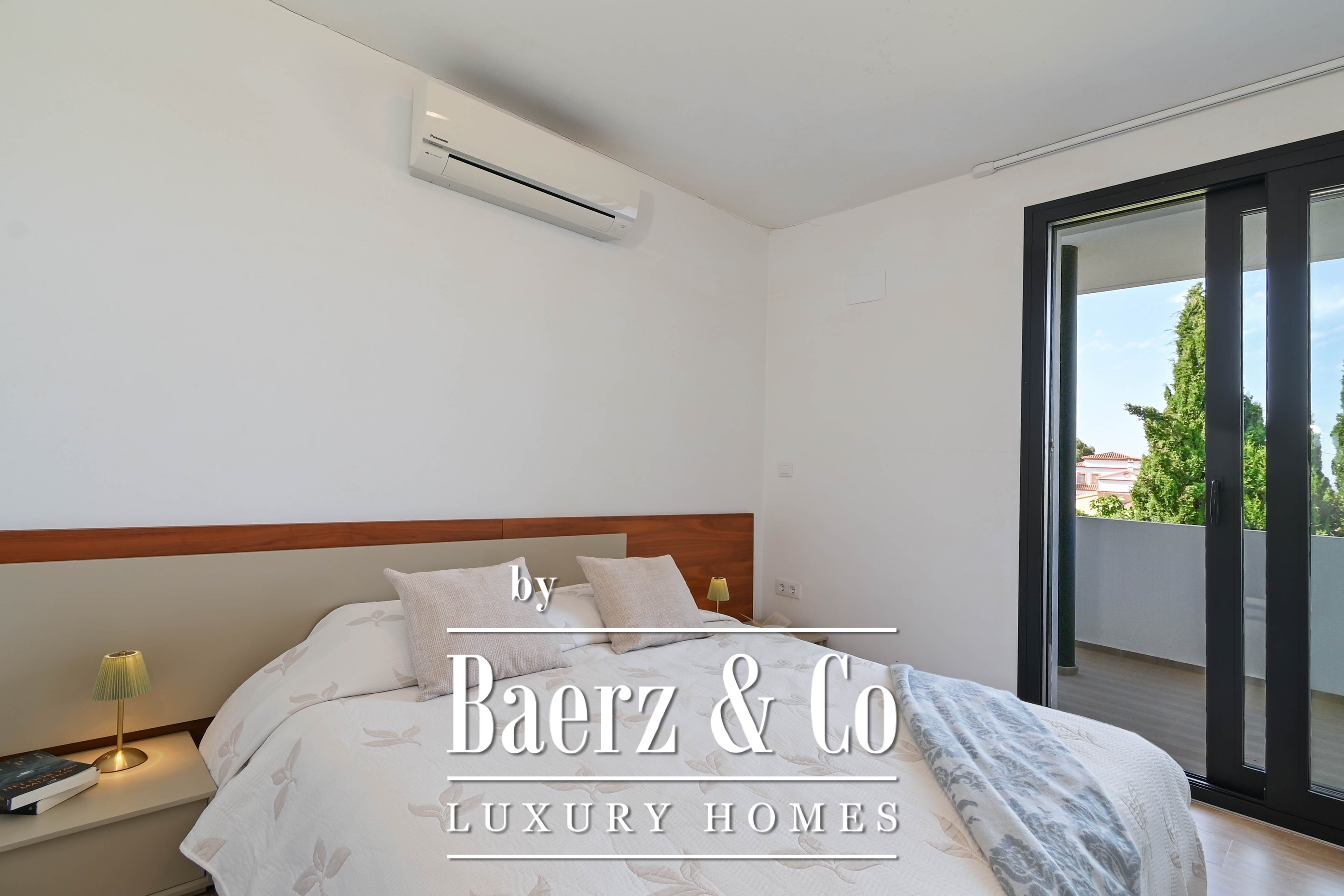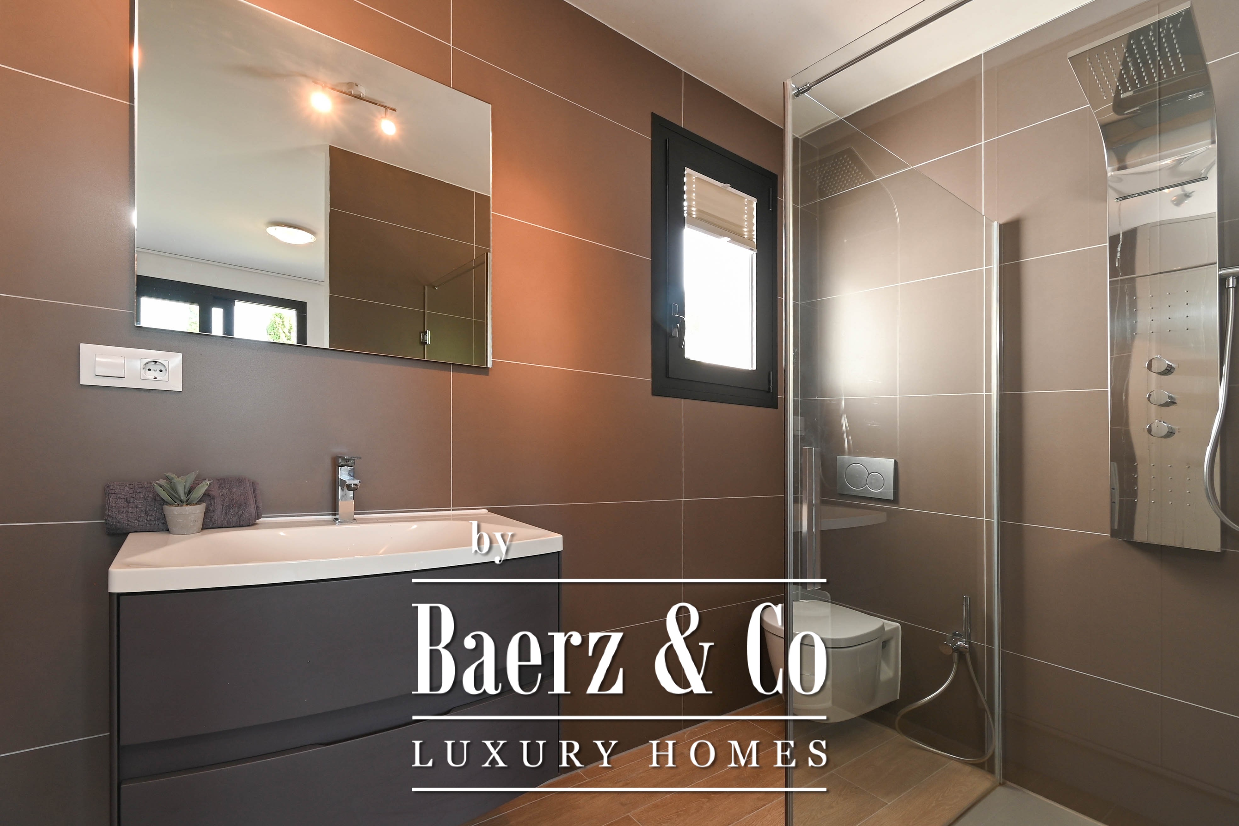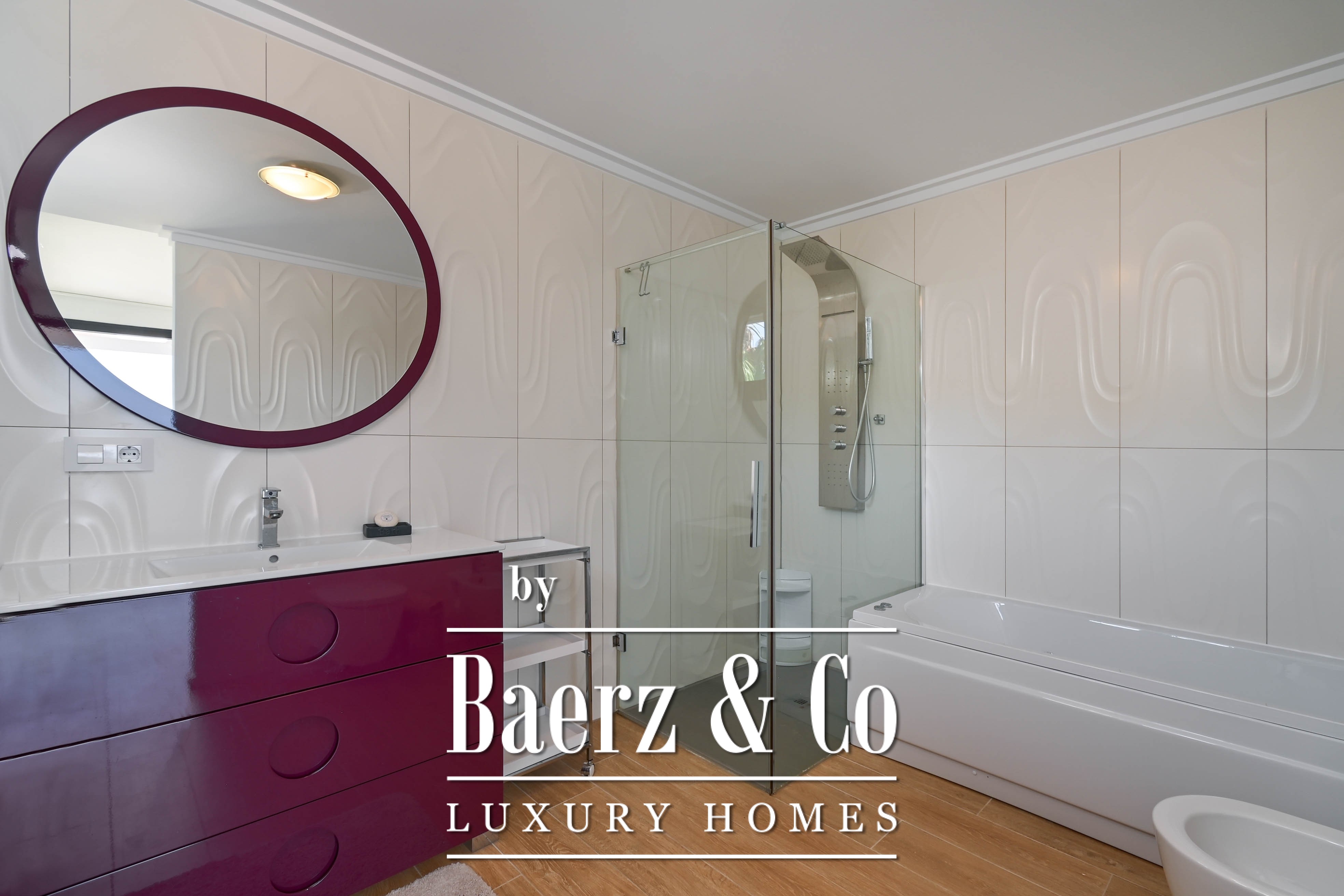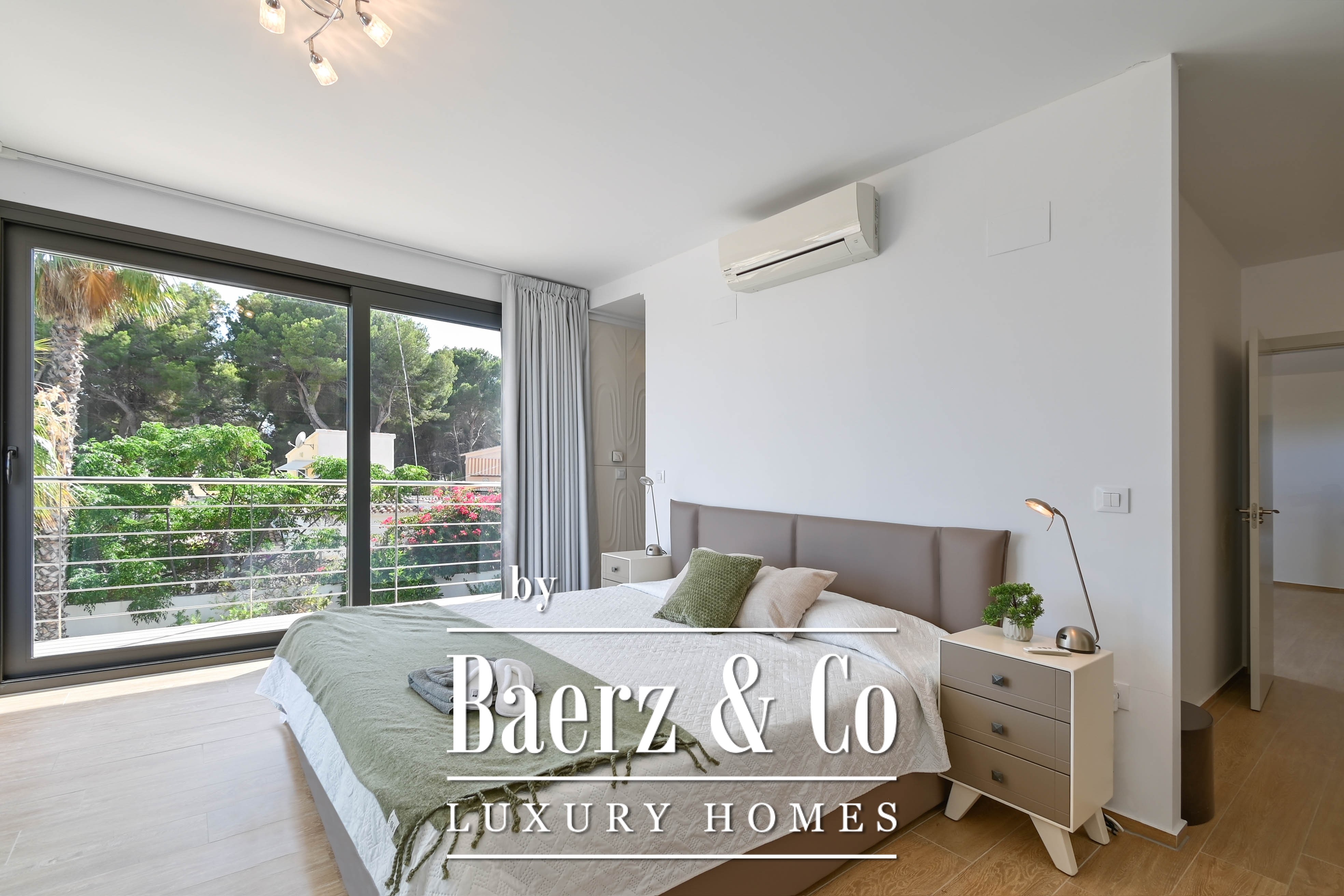 Buiten geniet je van een ruim terras, een uitnodigend zwembad en uiteraard het spectaculaire uitzicht op de Middellandse Zee. De dubbele garage zorgt voor extra comfort en bergruimte.