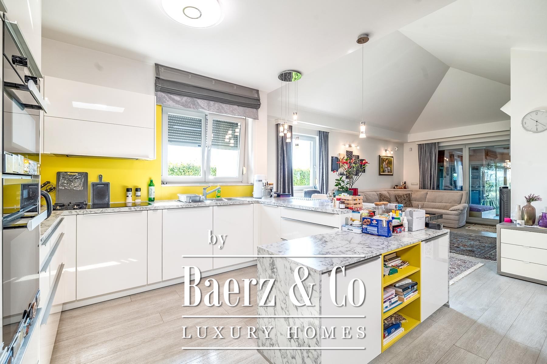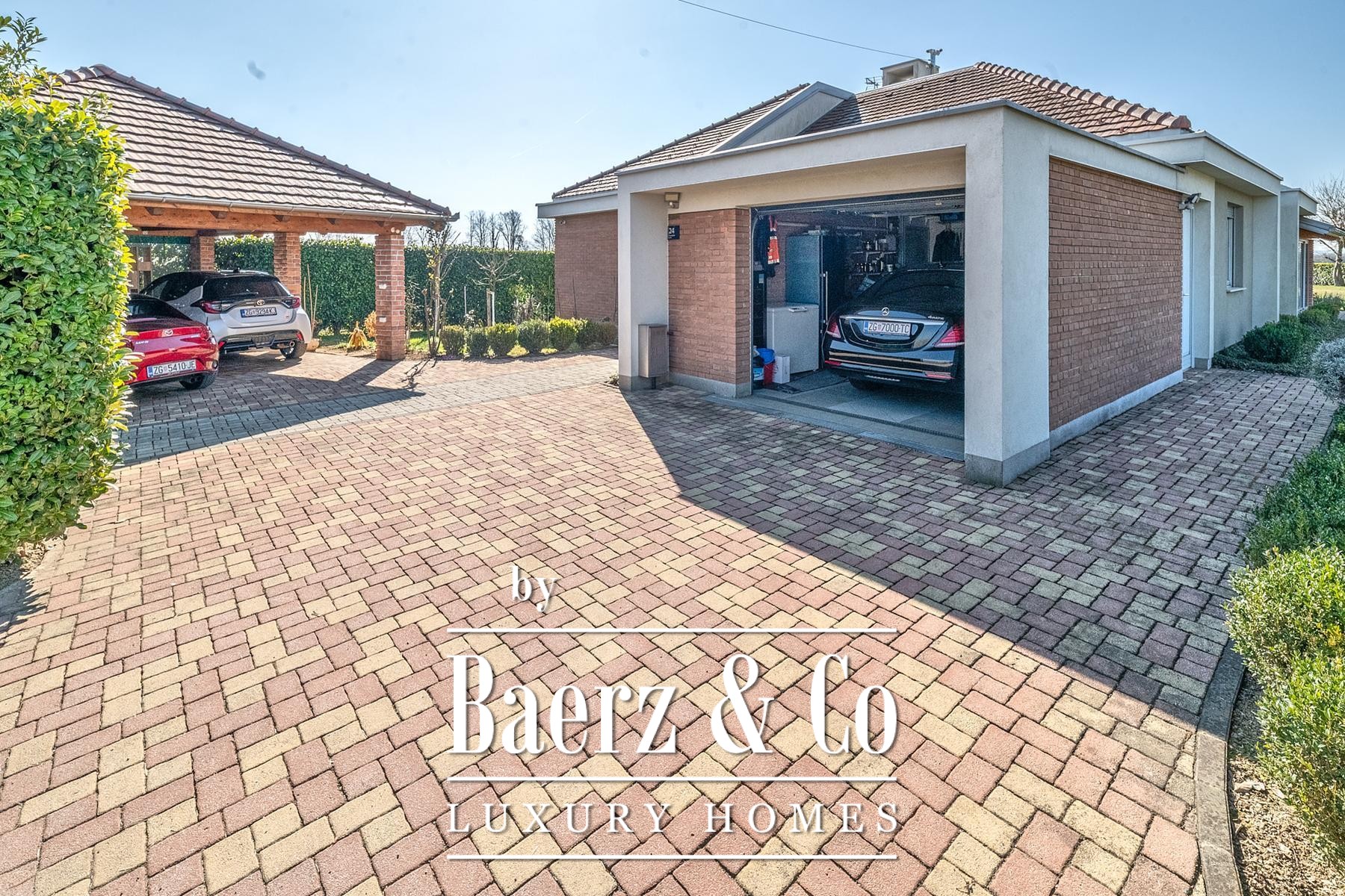 Buiten vormt het volgroeide groen een fraai decor met een boomgaard, keurig onderhouden gazon en hoge groene hagen voor volledige privacy. Geniet van het barbecuegedeelte onder de overdekte veranda. Moderne inbouwmeubels, kwaliteitsapparatuur, een haard en een alarmsysteem maken het geheel af. De woning is zeer gunstig gelegen ten opzichte van Novi Zagreb en de snelweg, waardoor comfort samengaat met rust. Dit huis in Novi Zagreb Zapad biedt een bijzondere balans tussen verbondenheid en privacy, speciaal voor wie waarde hecht aan sereniteit en nabijheid.