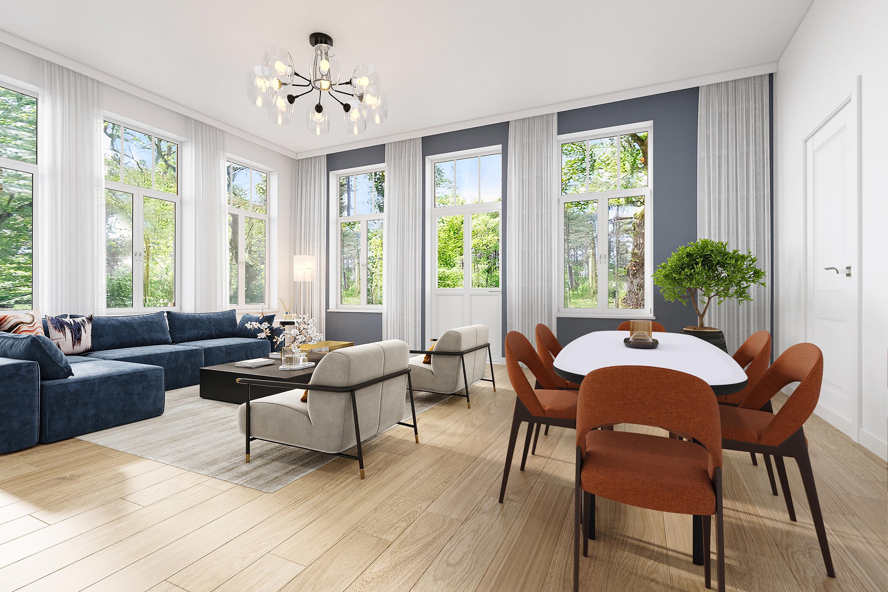 De bosvilla’s ademen nog altijd de sfeer van het verleden, met hoge plafonds, authentieke details en grote raampartijen die je het bos in al zijn pracht doen beleven. Tegelijkertijd zijn de villa’s volledig toekomstbestendig: gasloos, voorzien van vloerverwarming en -koeling via een eigen bodembron, HR++ glas en optimale isolatie. Het resultaat? Een energielabel A++ en lage energielasten én met het comfort van een hypermoderne verwarming.