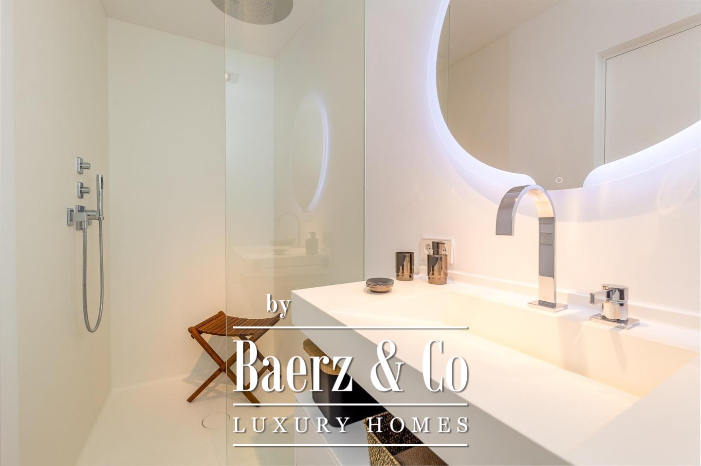 Op de hoofdverdieping bevinden zich een open, functionele keuken, een aparte eethoek voor intieme diners en een afzonderlijke wasruimte. Er zijn twee slaapkamers, elk met een eigen en-suite badkamer, die een ingetogen toevluchtsoord bieden voor het dagelijks leven. De tussenverdieping opent zich naar een lichte leefruimte en nodigt uit tot een bewust evenwicht tussen activiteit en rust, dankzij de natuurlijke lichtinval.