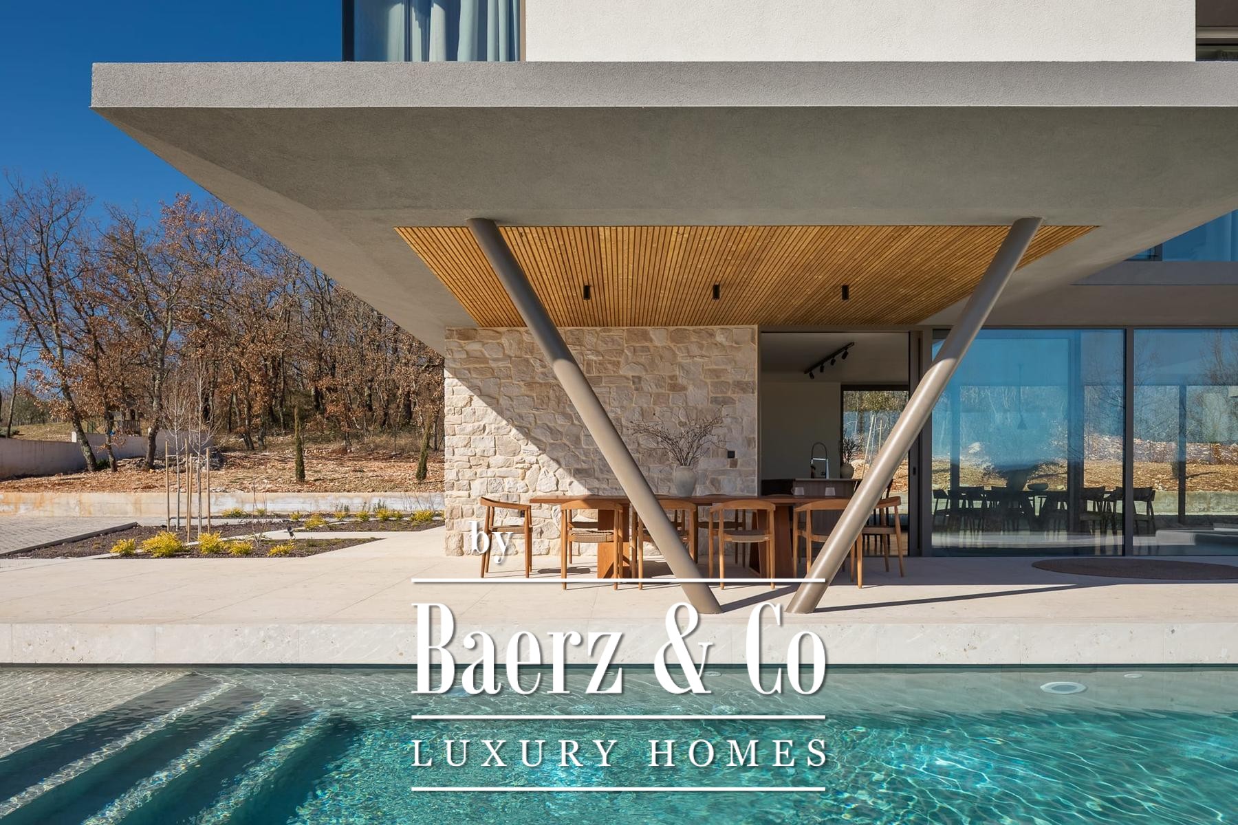 For sale is an exceptional property comprising two completely separate, modernly decorated villas, situated on a spacious plot in the heart of Istria. These villas represent the perfect combination of luxury, privacy, and functionality, offering numerous possibilities - whether you are looking for a family home, a space for generational living, or an attractive investment for tourist rental.Each villa is a separate house, fully equipped, with its own entrance, living room, kitchen, multiple bedrooms, and bathrooms. They are decorated with special attention to detail, quality materials and high-standard equipment were used, and the entire space exudes elegance and contemporary design. Meanwhile, the spacious glass walls create a seamless connection between the indoor and outdoor living areas, allowing natural light to flood the villa and offering stunning views.Additional value to this property is given by awards for architectural quality and sustainable approach - one of the villas is the holder of a certificate for environmentally friendly tourism and was also recognized as a finalist in the European elections for the best holiday homes. Such awards further confirm the high level of performance and potential of the property in the luxury rental segment.Villa 1: