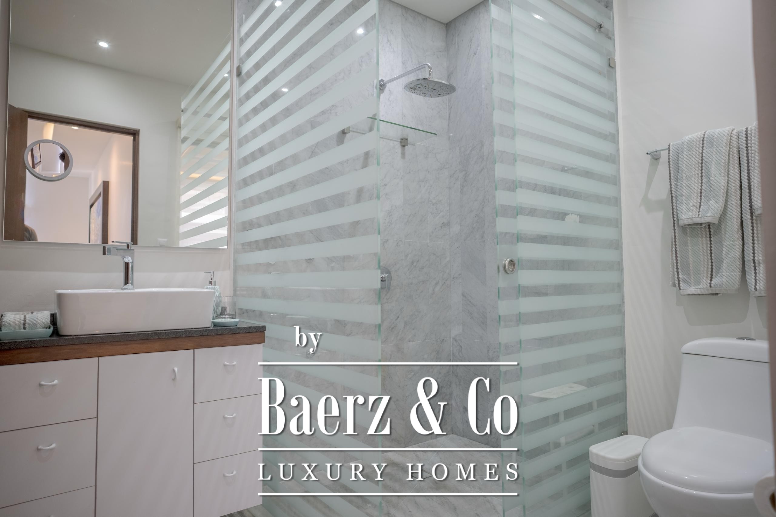 La recámara principal es un verdadero oasis: amplio walk-in closet, baño con doble lavamanos, ducha y un elegante jacuzzi para dos personas. Además, encontrarás dos recámaras adicionales, cada una con baño privado, clósets y ventanas panorámicas que llenan los espacios de luz natural.