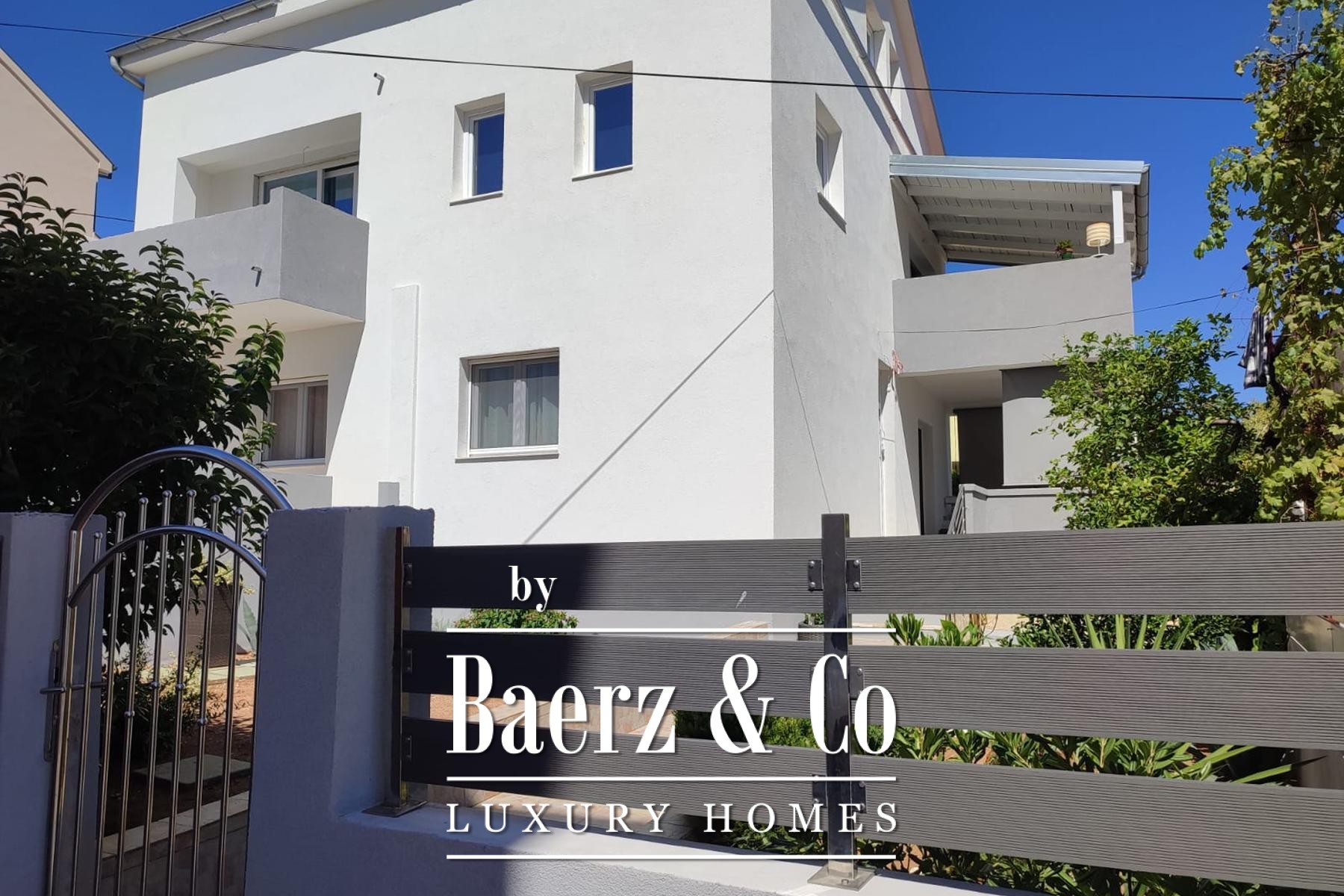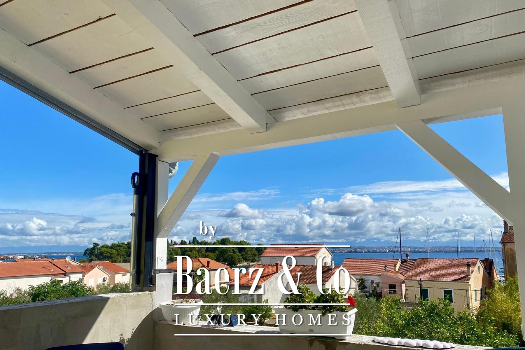 De begane grond bestaat uit een open woon-, eet- en keukengedeelte, drie slaapkamers, een badkamer, een gastentoilet en een royaal terras dat zich uitstekend leent voor buiten dineren. Het appartement op de eerste verdieping is 50 m² groot en beschikt over twee slaapkamers, een badkamer en een moderne keuken met toegang tot een overdekt terras met uitzicht op zee en Ošljak. De derde woning, een maisonette van 118 m², bevindt zich in hoogwaardige casco staat. De hoofdverdieping opent naar een balkon met zeezicht en het dakterras biedt panoramische uitzichten over het water, Ošljak en de stad Zadar.