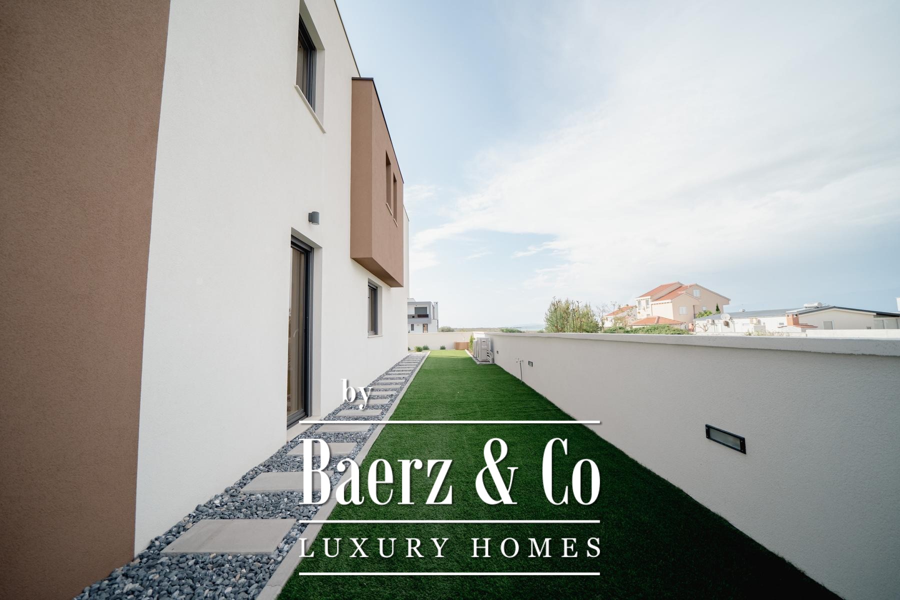 Townhouse Privlaka Kroatië is een eigentijdse villa, ideaal gelegen op slechts 300 meter van de zandige Adriatische kust, zorgvuldig ontworpen voor wie privacy en verfijnd wonen waardeert. Het perceel meet 448 m² en de villa biedt 188 m² verdeeld over twee vloeiende woonlagen, waardoor er overal een uitgebalanceerd gevoel van ruimte en licht ontstaat.
