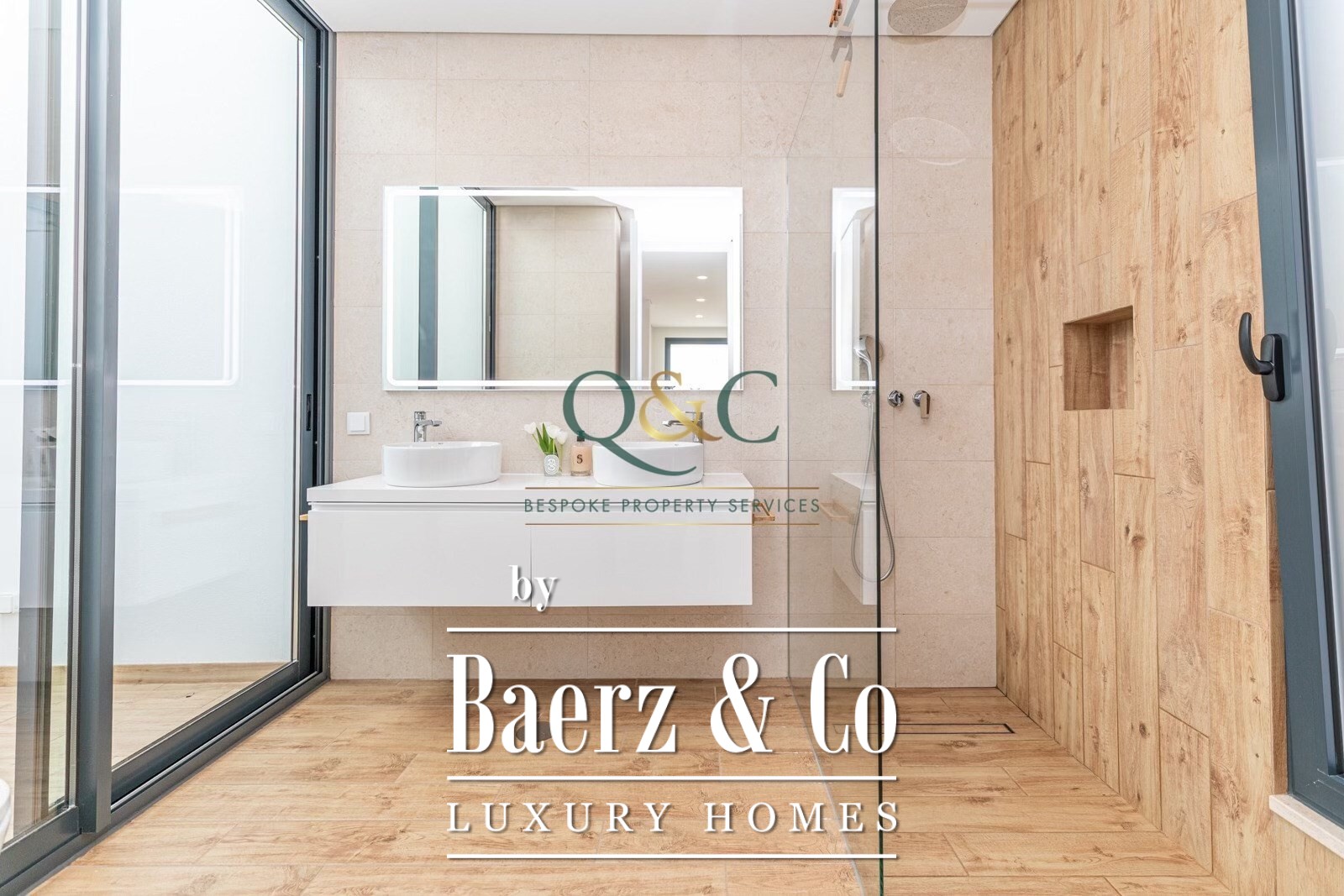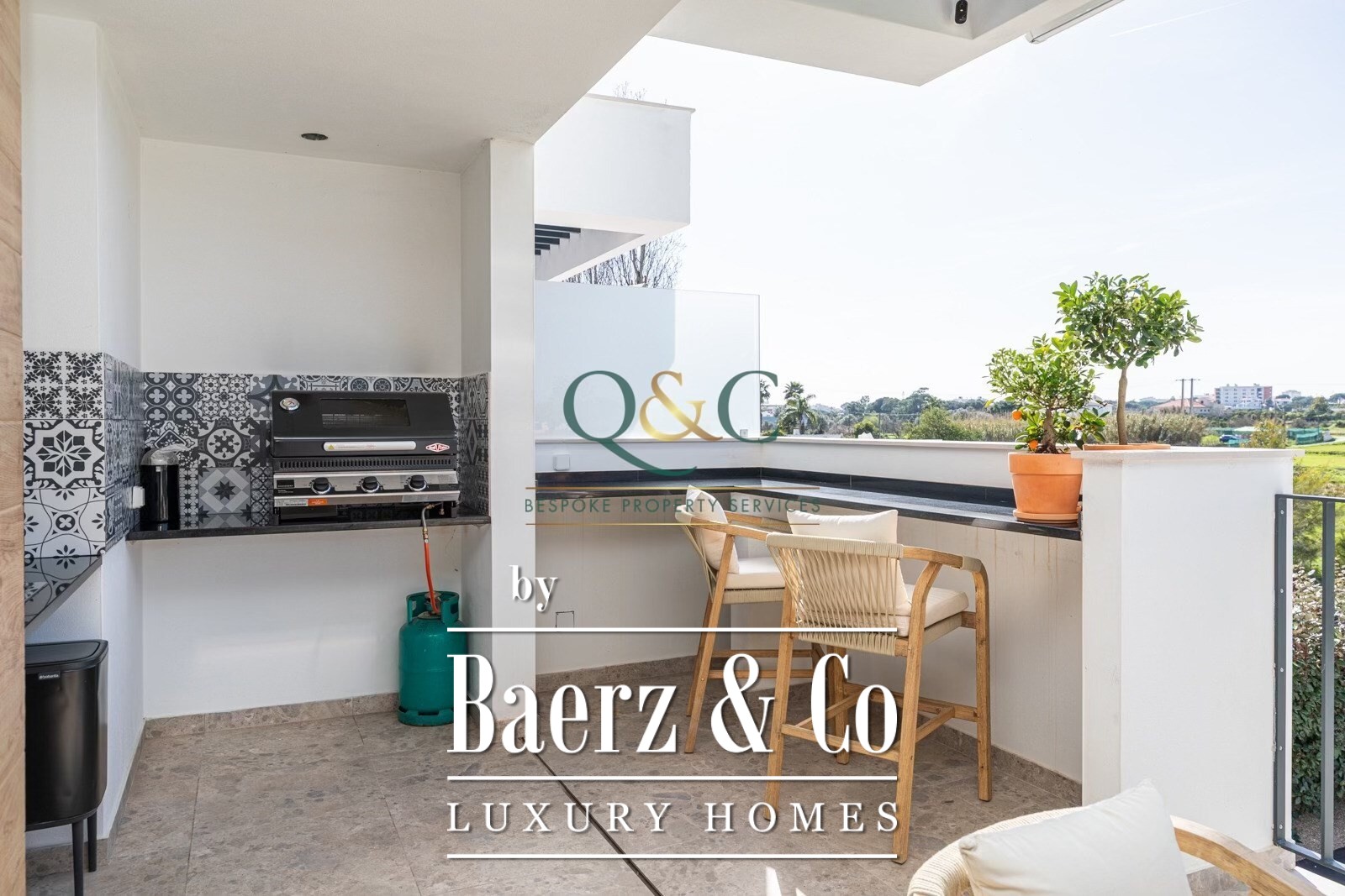 Buitenleven wordt naar een hoger niveau getild dankzij een zoutwaterzwembad van 7 x 3 m, een solar afdekking, warmtepomp en barbecuegedeelte – alles gesitueerd op een terras met elektrische zonwering. Vloerverwarming, airconditioning, zonnepanelen en centraal bedienbare elektrische rolluiken garanderen comfort gedurende het hele jaar. De villa is gebouwd in 2025 op een perceel van 333 m² en ligt op loopafstand van Fonte Santa, internationale scholen, prestigieuze golfbanen en de stranden van Trafal, Vilamoura en Vale do Lobo. De besloten tuin, dubbele beglazing en beveiligde parkeergelegenheid verzekeren een verfijnde en zorgeloze levensstijl. Daardoor is deze luxe villa te koop in Quarteira een discreet en bijzonder thuis.