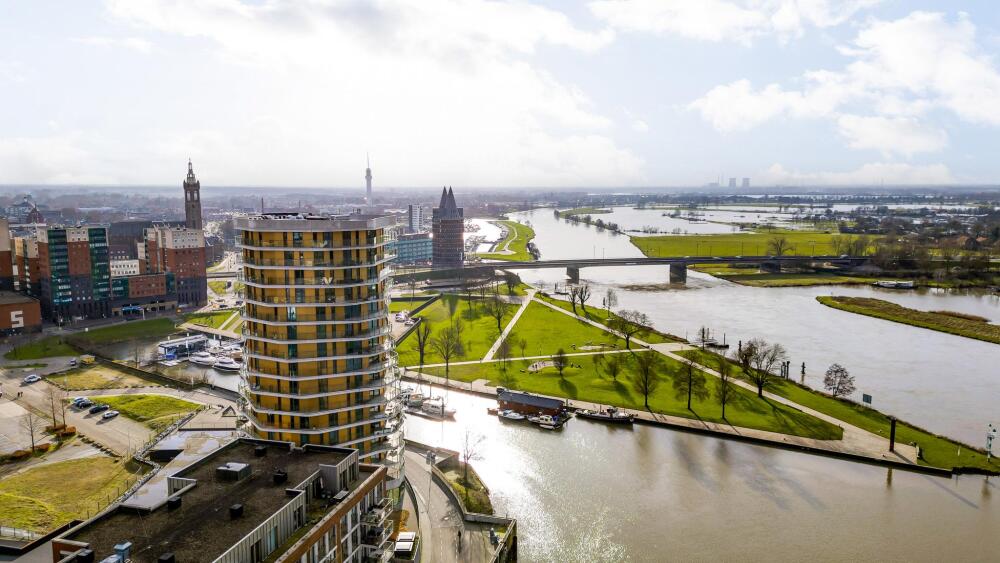 Het appartementencomplex heeft een perfecte ligging ten opzichte van de binnenstad van Roermond maar ook het behaaglijke gevoel van een "vrije woonomgeving" met het weidse panoramisch uitzicht over de Maasplassen van Roermond.