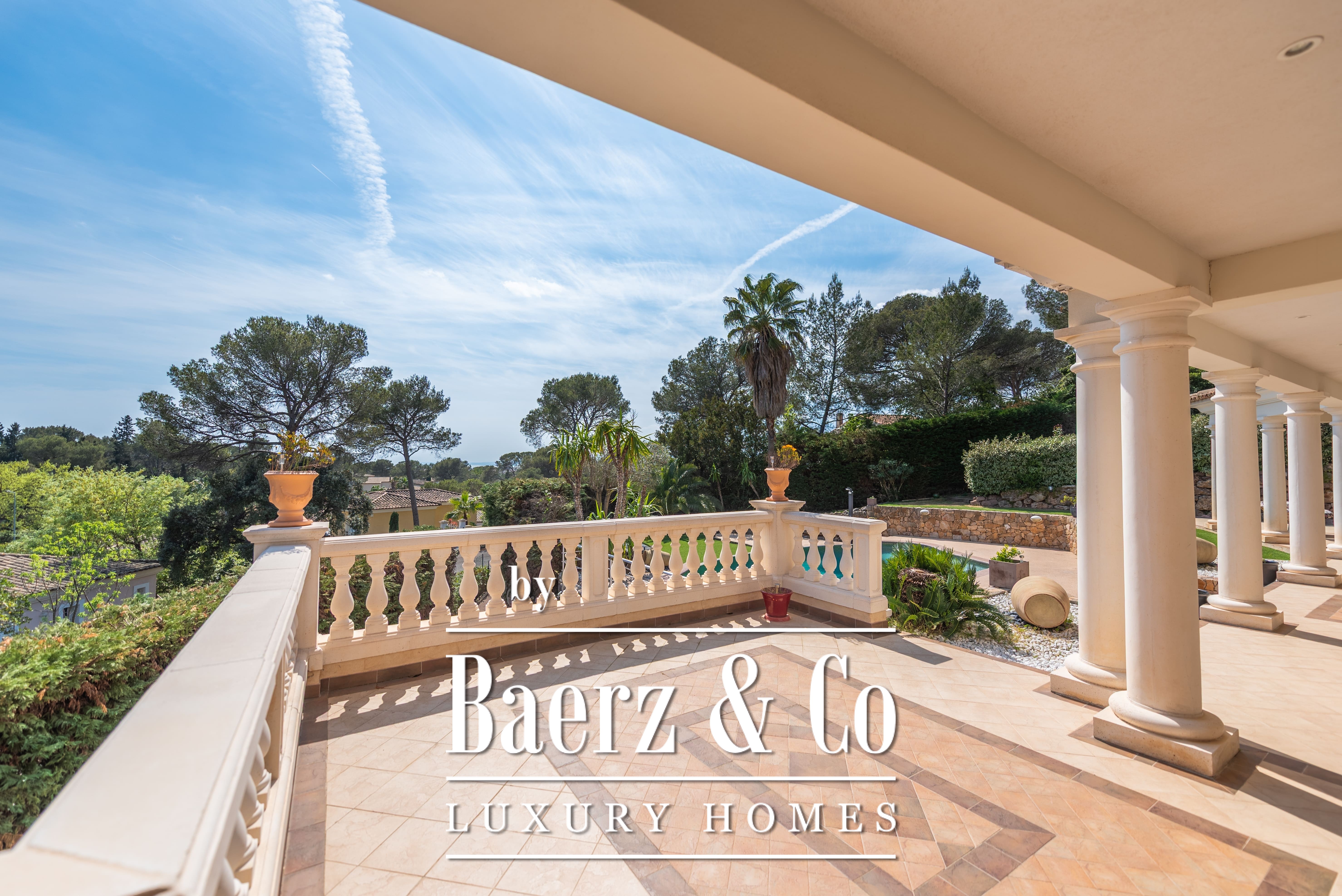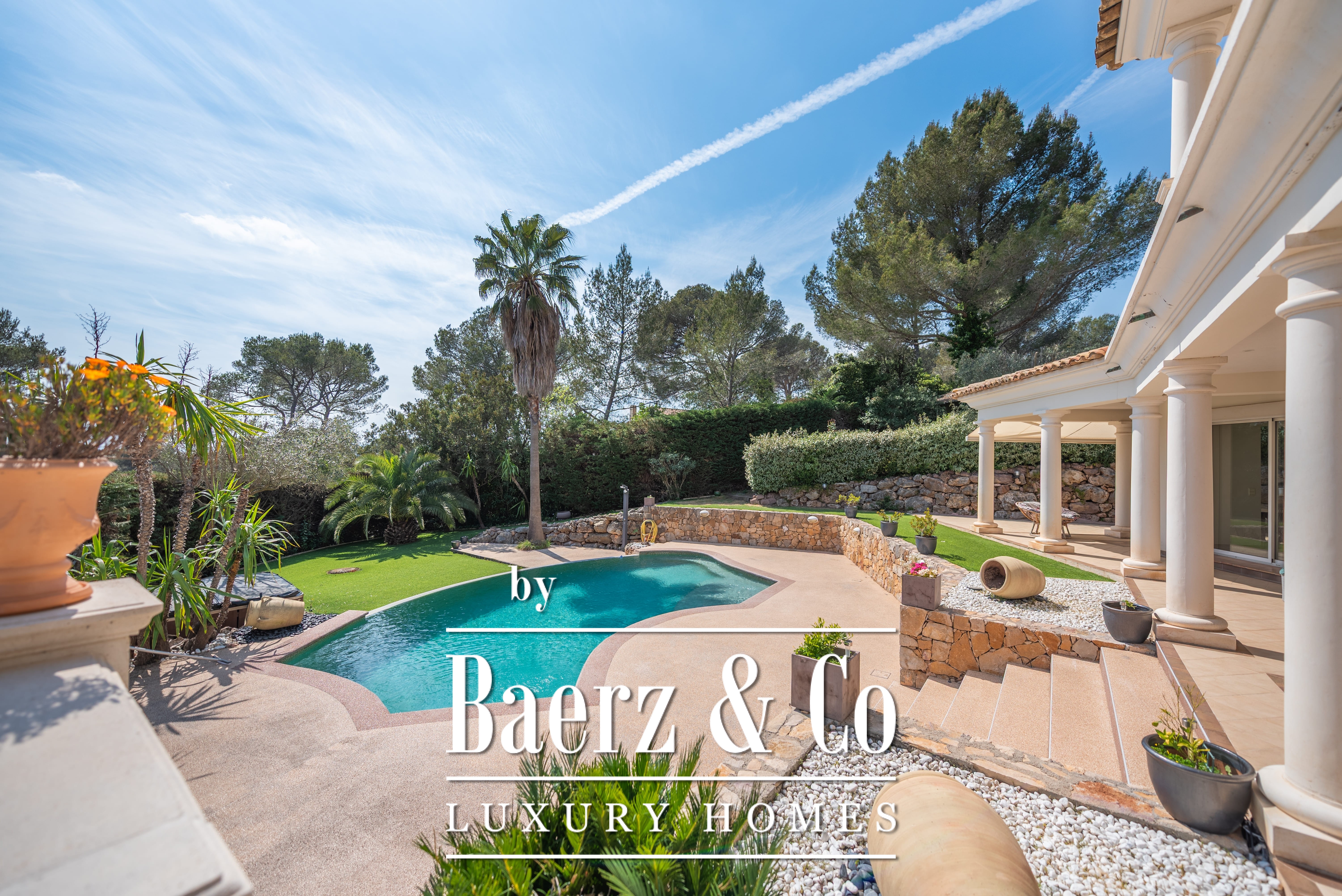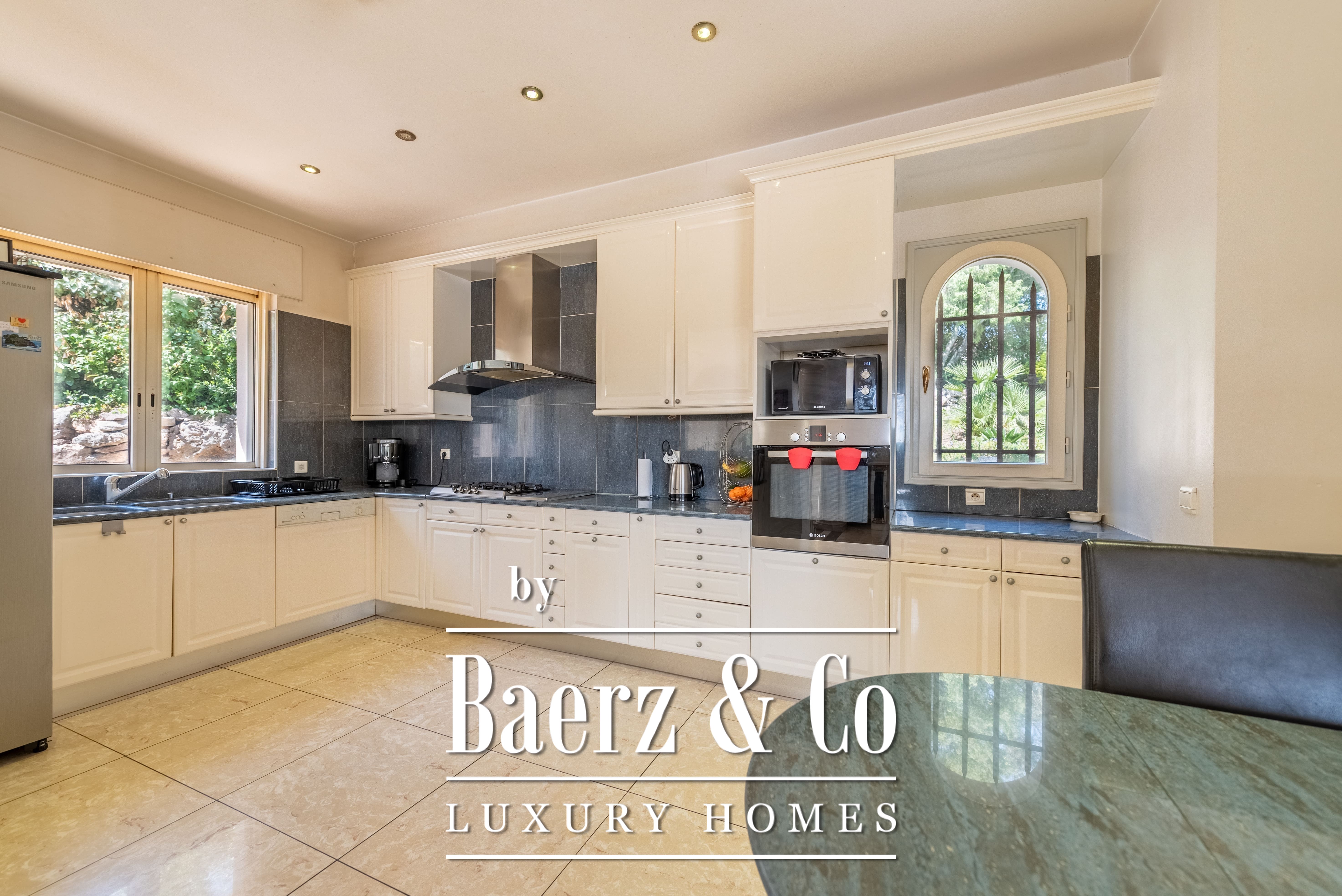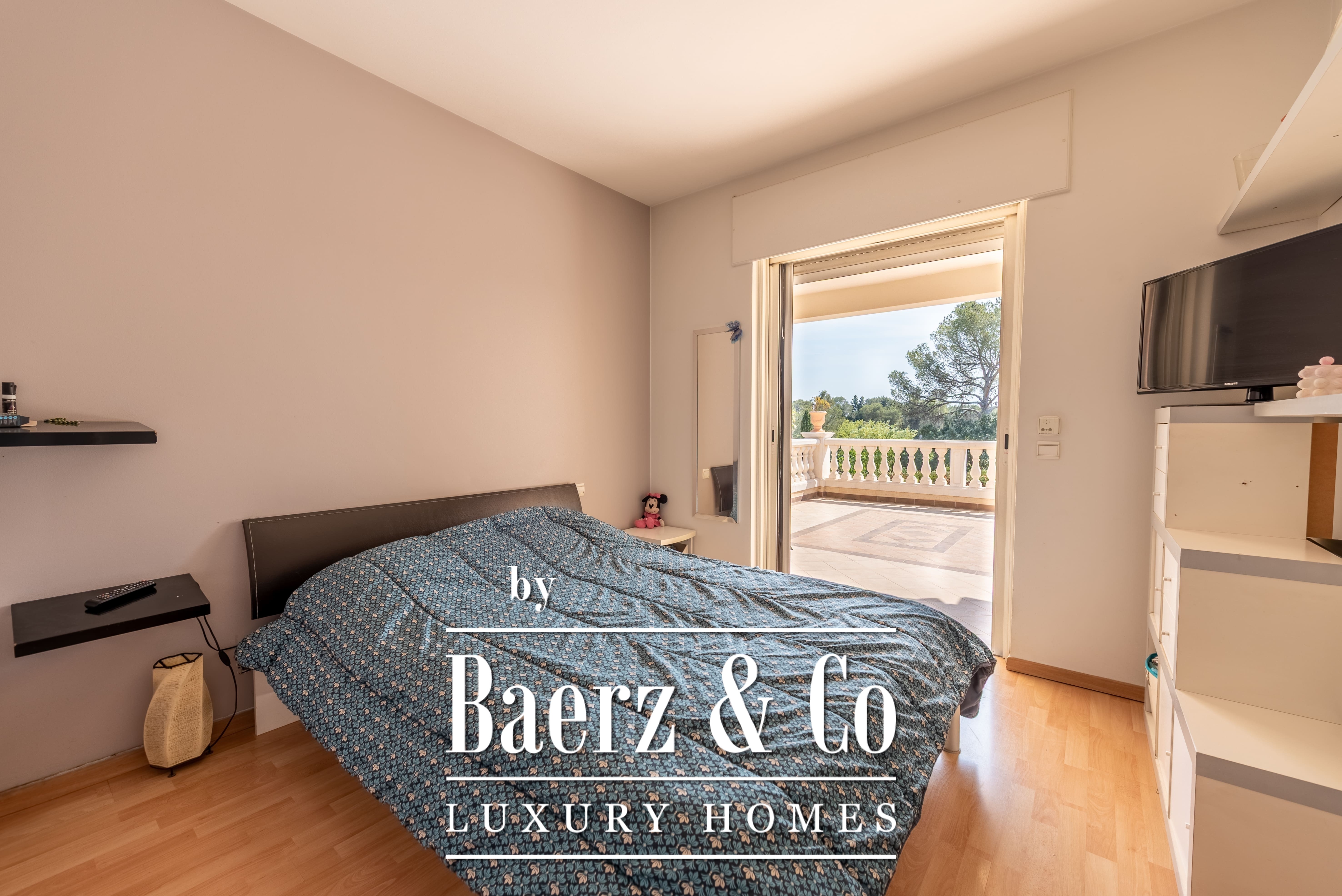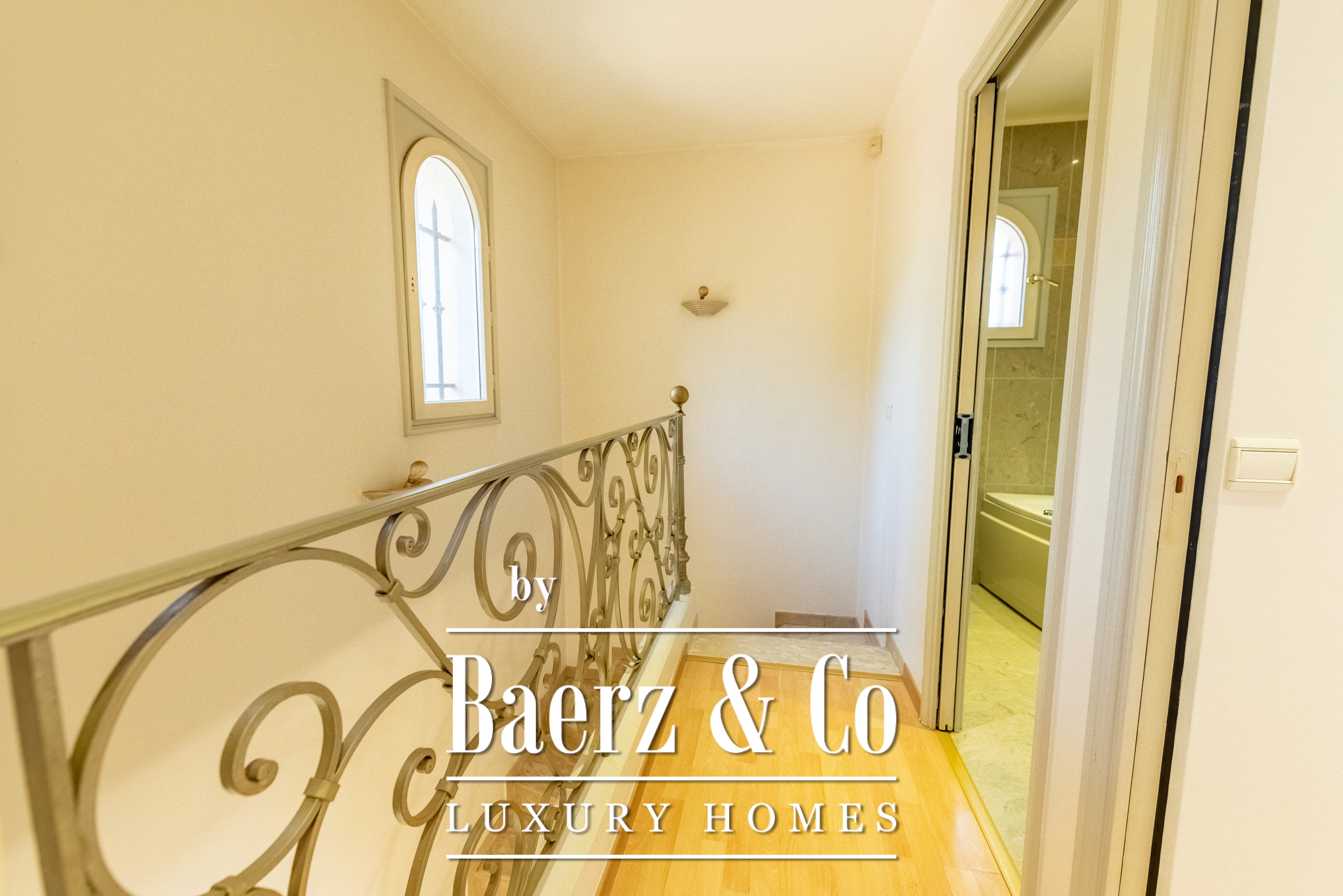 Het aangelegde perceel van 1.511 m² omringt het huis met volwassen tuinen, verschillende terrassen en een infinity pool. Op het lagere niveau vindt u een speelkamer, dubbele garage en technische ruimtes. Details als aluminium kozijnen, centrale elektrische rolluiken, alarmsysteem, videobewaking en een elektrische poort zorgen voor extra gemoedsrust.