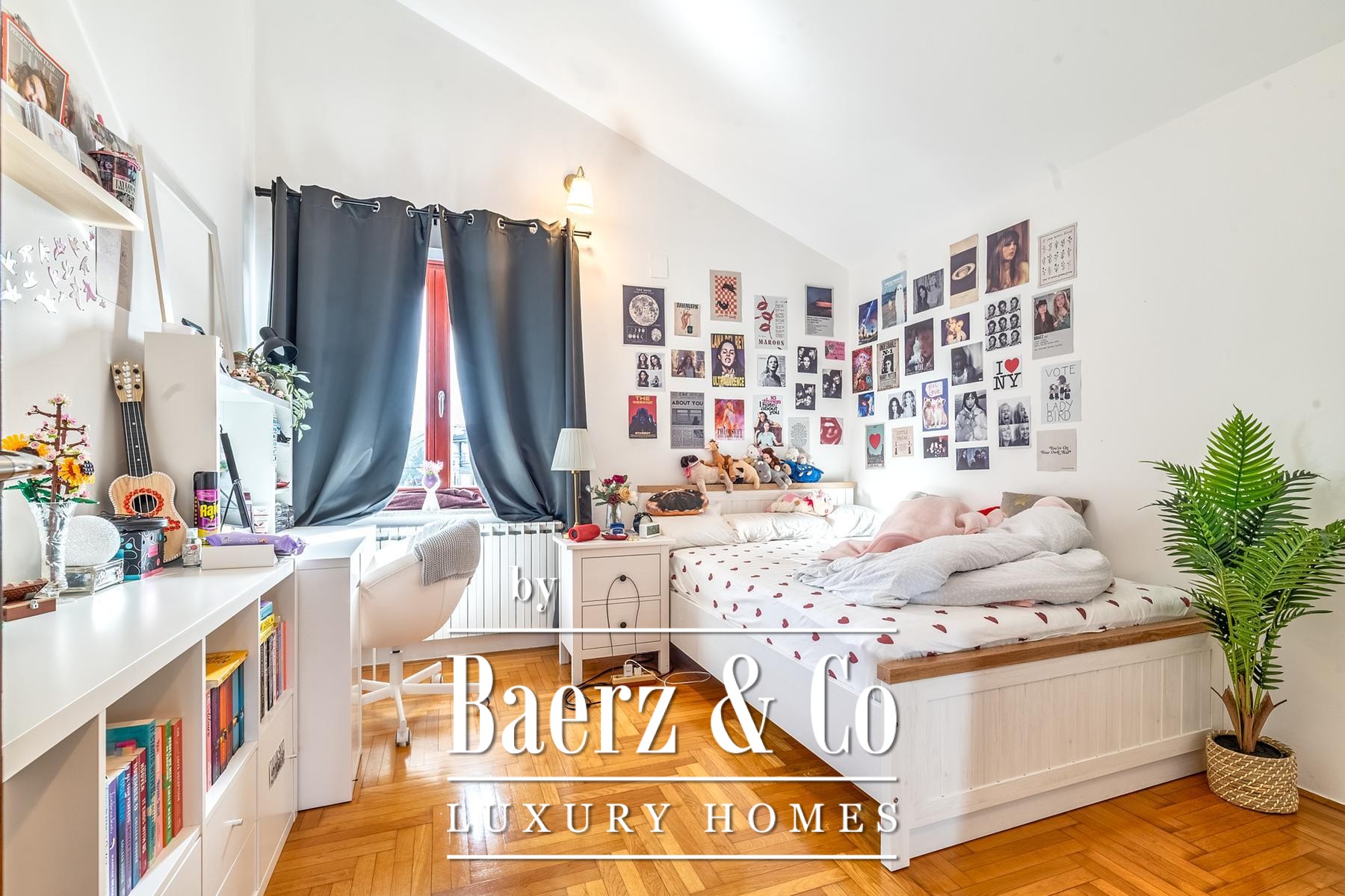 Op de eerste verdieping bevinden zich twee master slaapkamers met eigen badkamer, twee extra slaapkamers, een extra badkamer en een open terras, ontworpen voor privacy en comfort. Een bijgebouw met een bruto vloeroppervlakte van 60 m² biedt extra flexibiliteit op het perceel. Familiehuis Samobor wordt omgeven door groen en ligt op slechts één kilometer van het centrale stadsplein, waardoor zeldzame stedelijke bereikbaarheid wordt gecombineerd met serene rust.