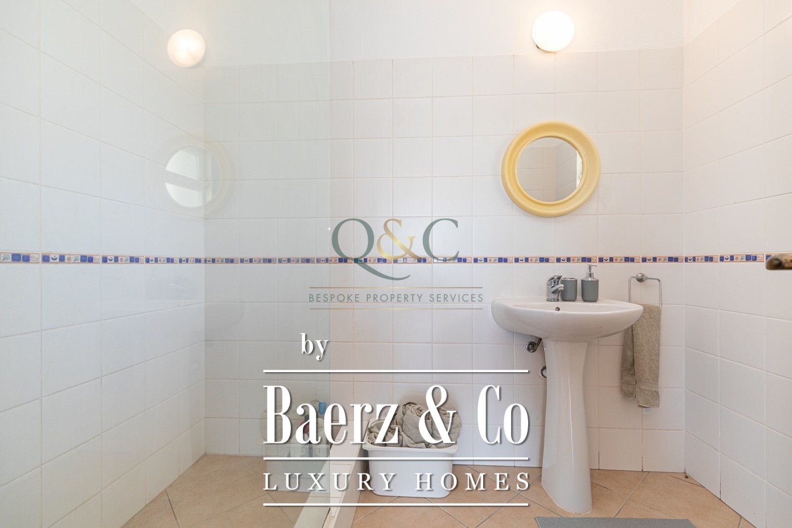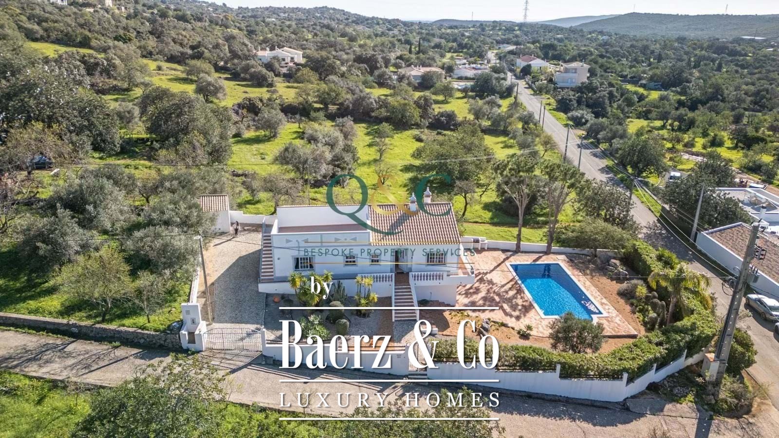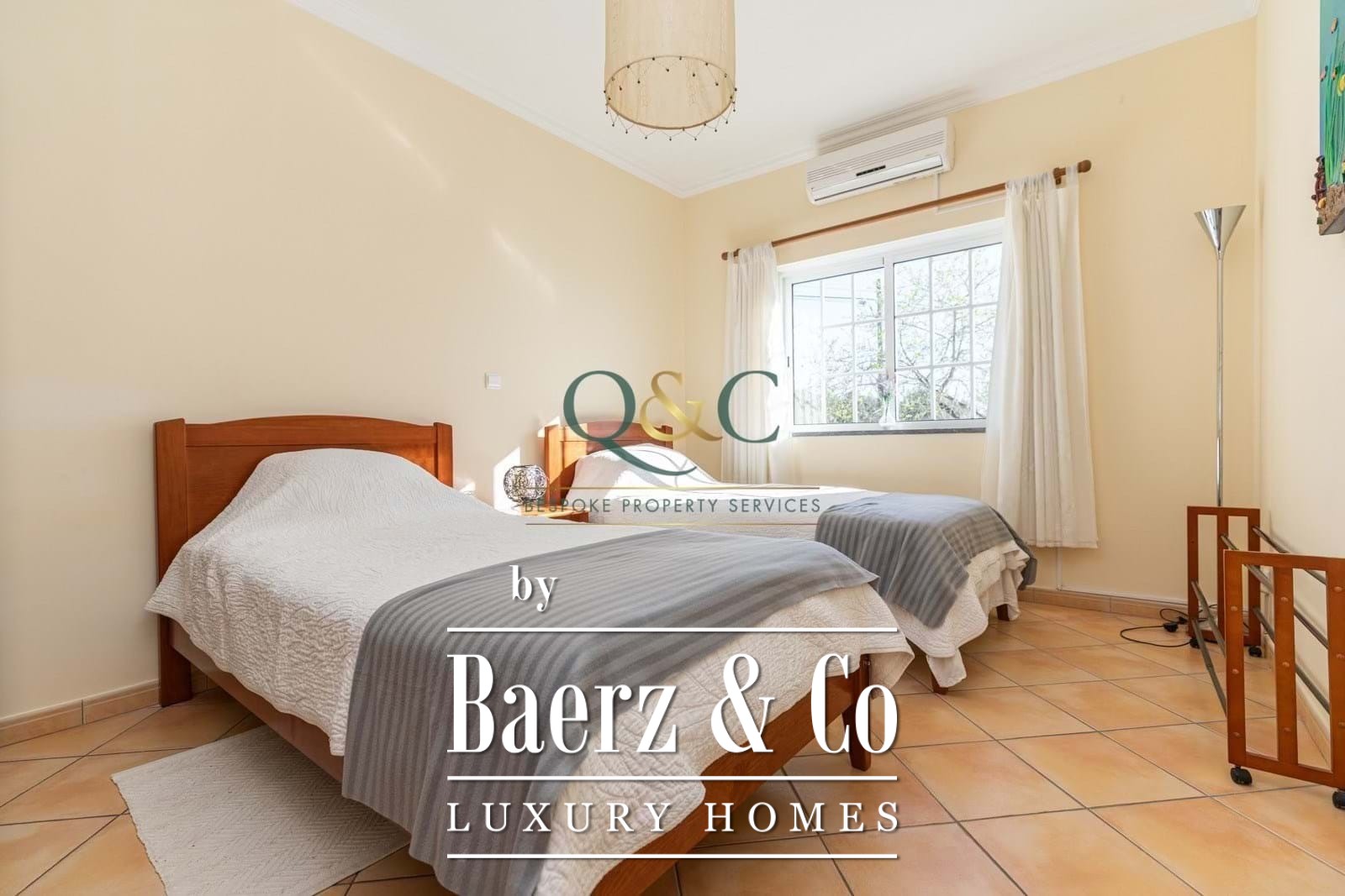 Een trap leidt naar een royale speelkamer met eigen keuken en badkamer, eenvoudig in te richten als vierde slaapkamer of zelfstandig appartement. Diverse terrassen, een dakterras met breed uitzicht, volwassen tuinen en een royaal zwembad bieden volop mogelijkheden voor rust, gezellig samenzijn of een discrete terugtrekking. Kenmerken zijn onder meer volledige airconditioning, dubbele beglazing, barbecue, irrigatiesysteem, parkeergelegenheid op eigen terrein en aansluiting op het gemeentelijke waternet. Deze villa biedt een directe verbinding met het ritme van het landelijke leven in de Algarve, binnen handbereik van stedelijke voorzieningen.