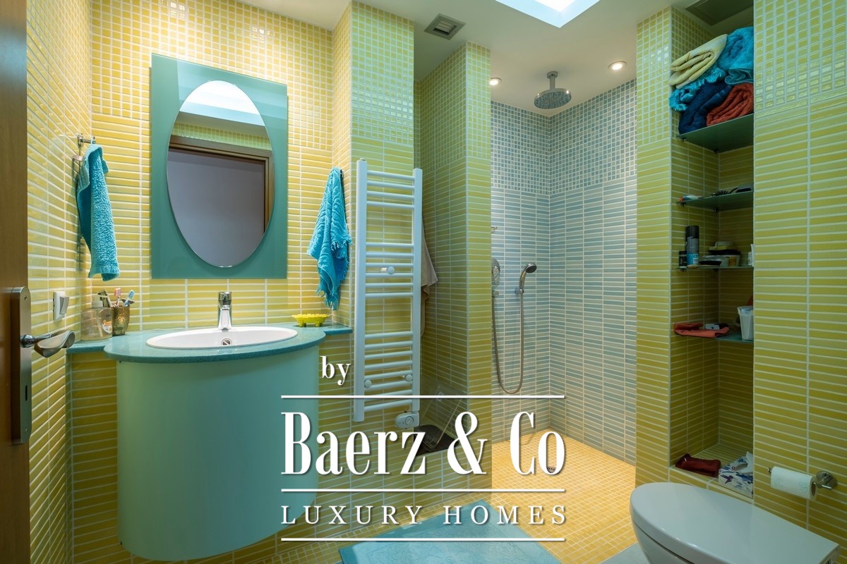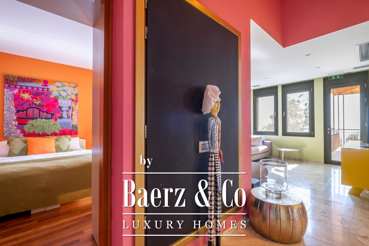 Het interieur, vormgegeven onder begeleiding van de huidige eigenaren, combineert esthetiek en functionaliteit met een volledig uitgeruste Miele-keuken, bijkeuken, eetruimte, een entertainmentruimte binnen en een aparte tv-kamer. Comfort wordt in het gehele huis gewaarborgd door vloerverwarming, centrale airconditioning en een warmtepomp gekoppeld aan zonnepanelen. Dubbel glas en moderne isolatie zorgen voor efficiëntie het hele jaar door, aangevuld met een beveiligingssysteem, cameranetwerk en LED-verlichting. De technologische voorzieningen omvatten drie vaatwassers, drie koelkasten, wifi-dekking, automatische bewatering en een generator voor continuïteit.