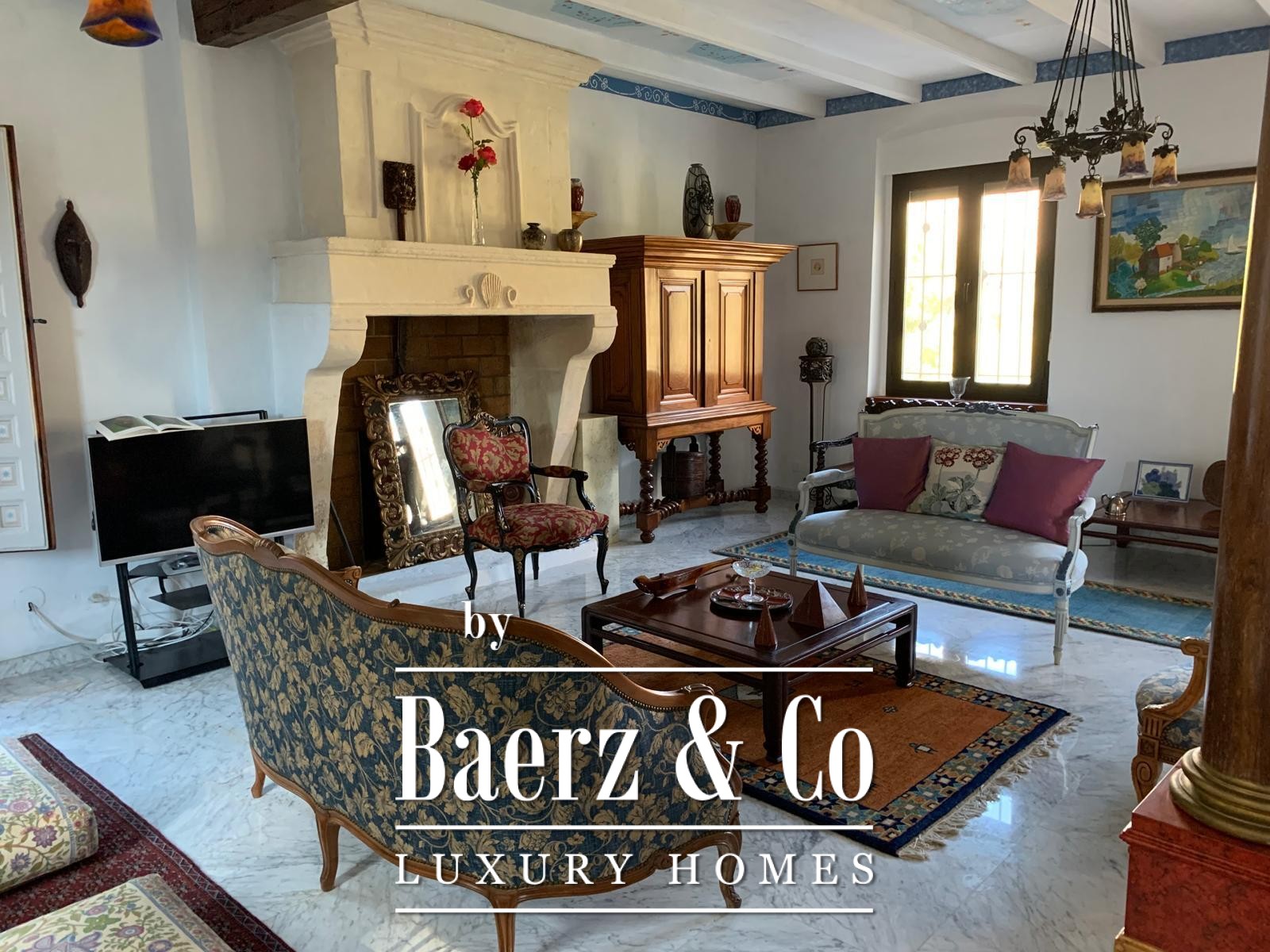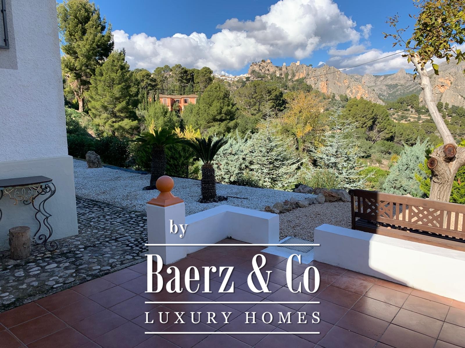Эта деревенская вилла в Гуадалесте предлагает спокойное убежище в окружении впечатляющего силуэта замка Гуадалест. Недвижимость располагается на приватном участке площадью 5 750 м² и сочетает классическую испанскую архитектуру с гармоничным природным окружением. Сразу при входе ощущается простор благодаря высоким потолкам и обилию естественного света. Основная резиденция занимает два этажа и примерно 230 м²: шесть спален и пять ванных комнат обеспечивают приватность и комфорт.