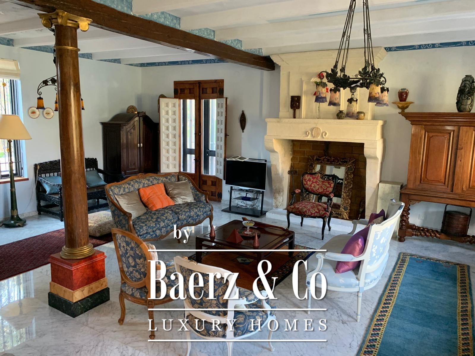 На первом этаже располагаются отдельная кухня, галерея, кабинет, столовая и гостиная с историческим камином 1650 года. На втором этаже три спальни с великолепными видами на горы и средневековый замок, две с ванными комнатами en-suite. Отдельная студия создаёт дополнительные возможности для гостей. Снаружи ухоженная территория с взрослыми деревьями и растительностью, оборудованная капельным орошением, окружает открытые и крытые террасы уютной зеленью.