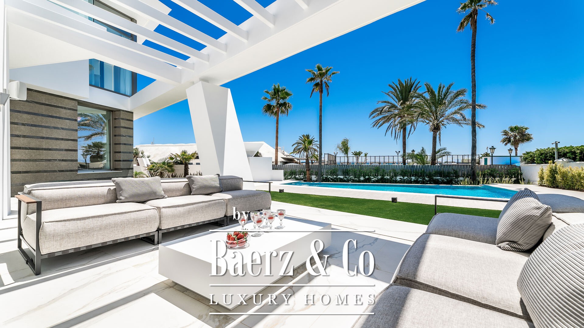 Вилла Marbella Beachfront воплощает современный уровень жизни у моря. Это новое строение площадью 1 229 м² располагает шестью спальнями и шестью ванными комнатами, расположено на частном участке площадью 1 500 м² в престижном районе Los Monteros Beach. Резиденция занимает уникальное положение на первой береговой линии с прямым выходом к пляжу, соседствуя с культовым Marbella Beach Club.