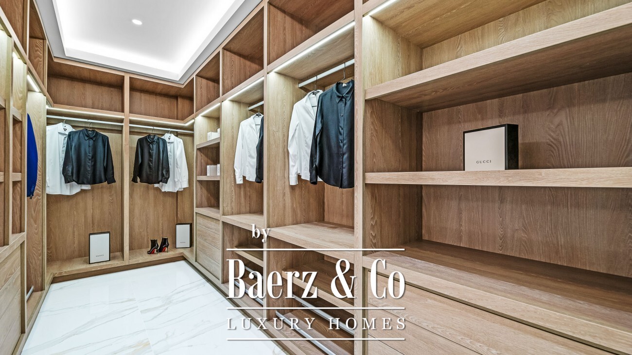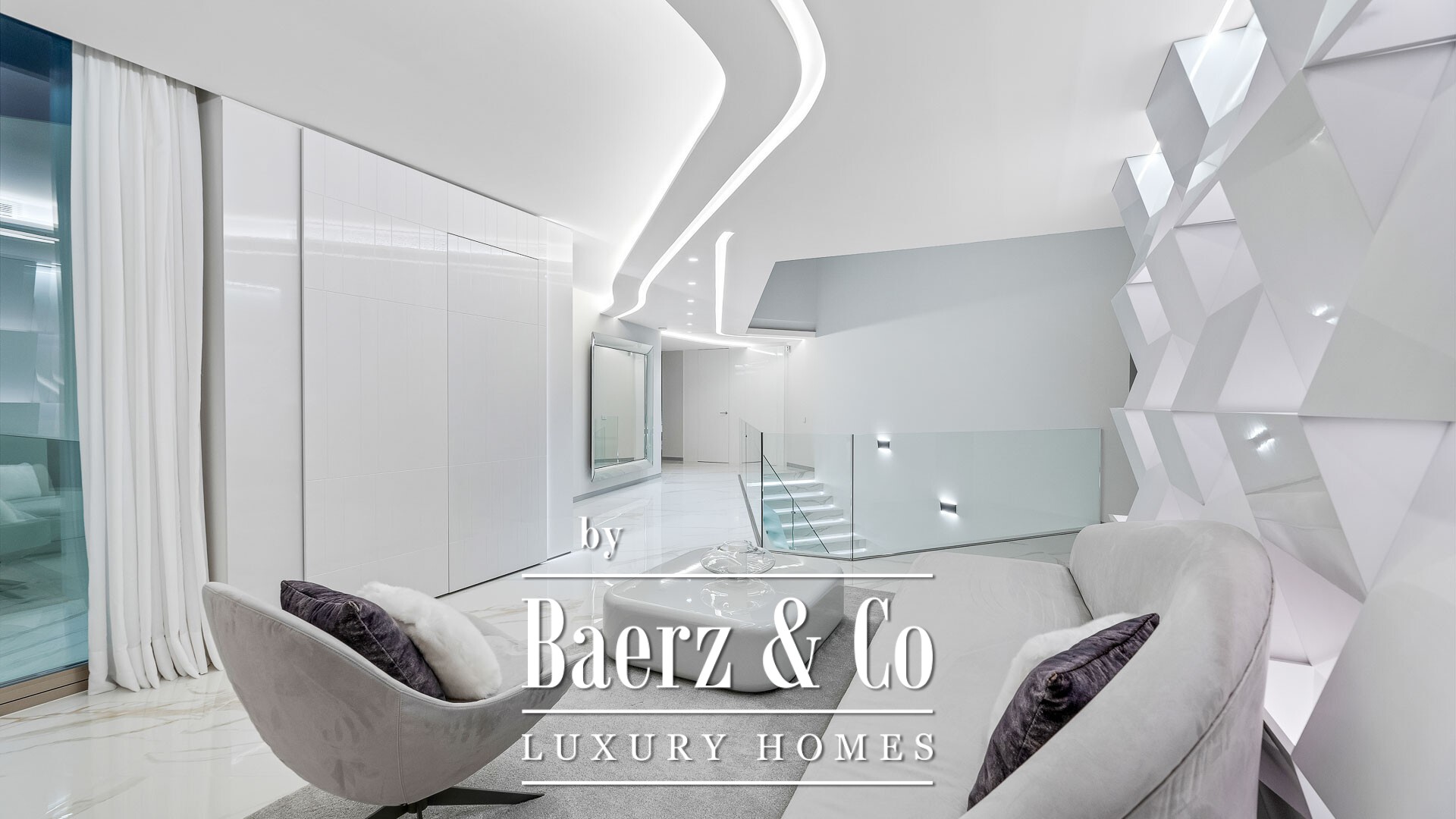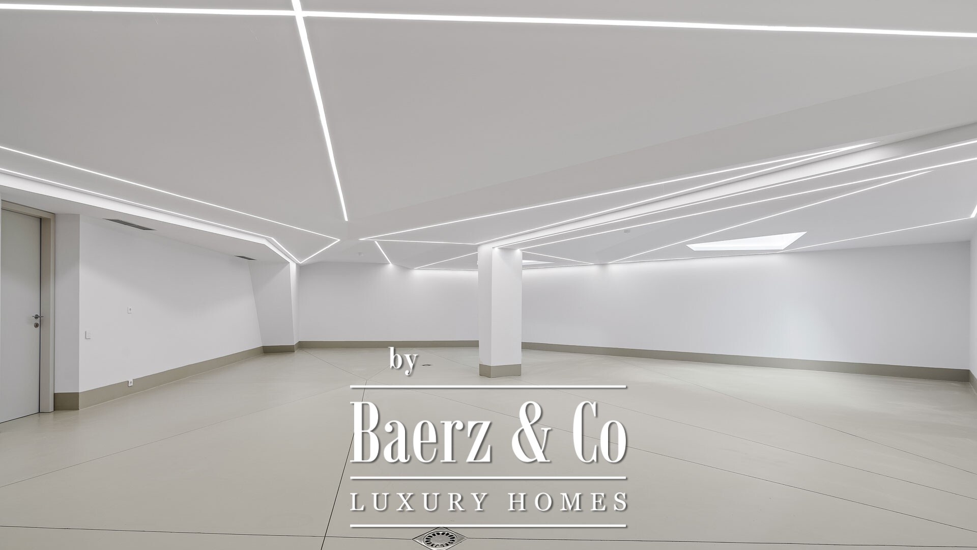 Три уровня соединены частным лифтом. Внутри гостей встречает наполненный светом холл. Открытая гостиная и столовая зона плавно переходят в частично изолированную кухню, откуда предусмотрен выход на террасы с непрерывными видами на Средиземное море. На основном уровне располагается мастер-сьют, создающий атмосферу уединения, а смежный офис с двойной высотой потолков и обрамлением водой станет умиротворённым рабочим пространством. Подвал наполняется естественным светом, включает гараж на пять автомобилей, дополнительную спальню и многофункциональную комнату, подходящую для тренажерного зала, сауны или домашнего кинотеатра.