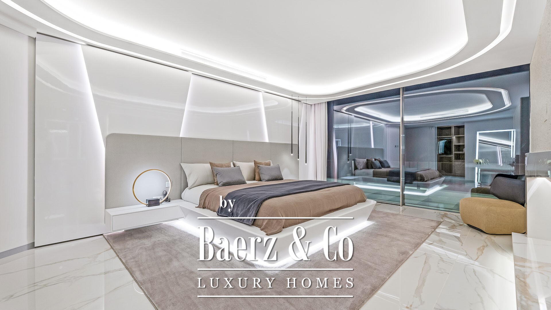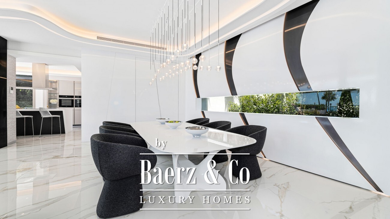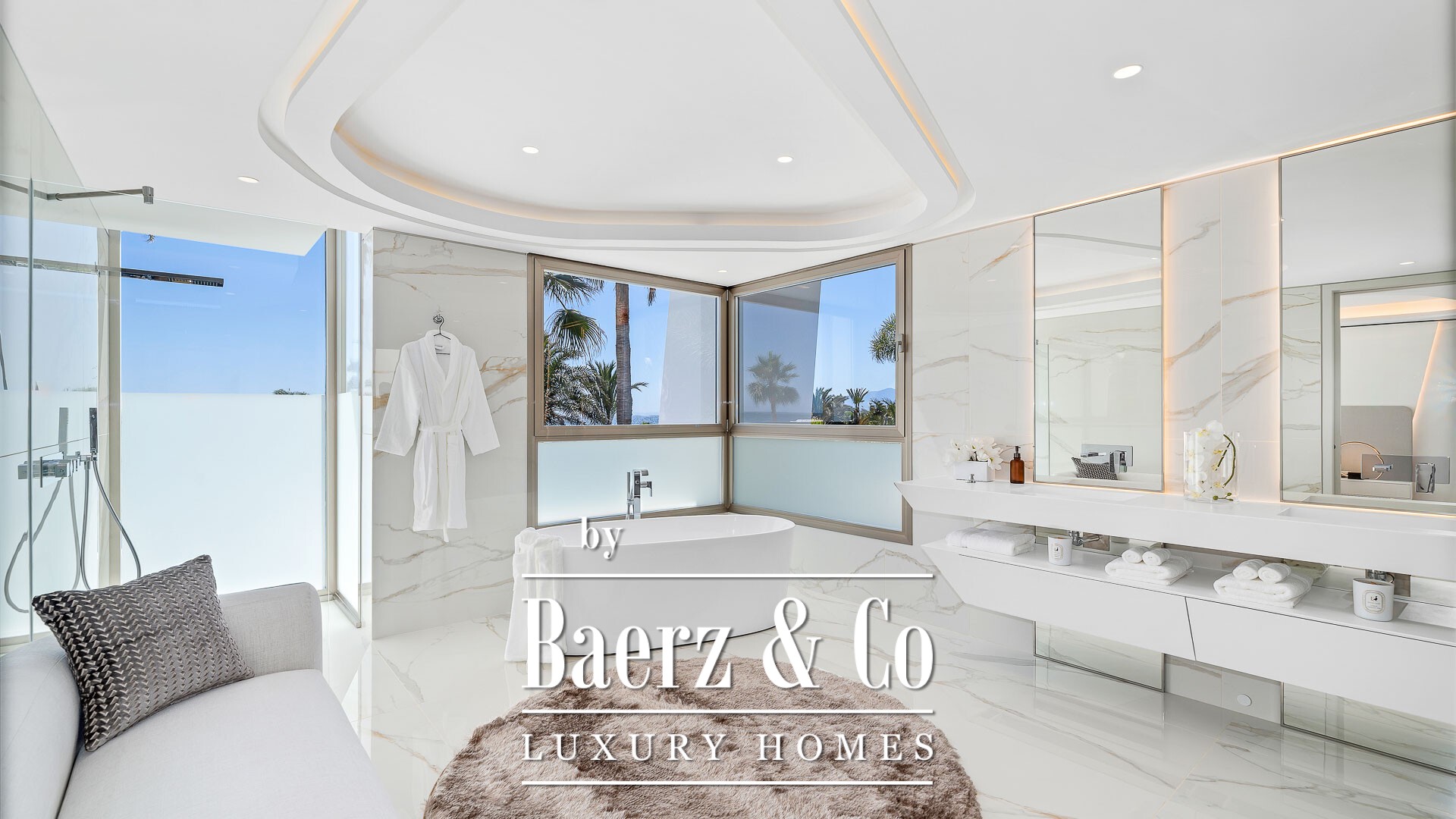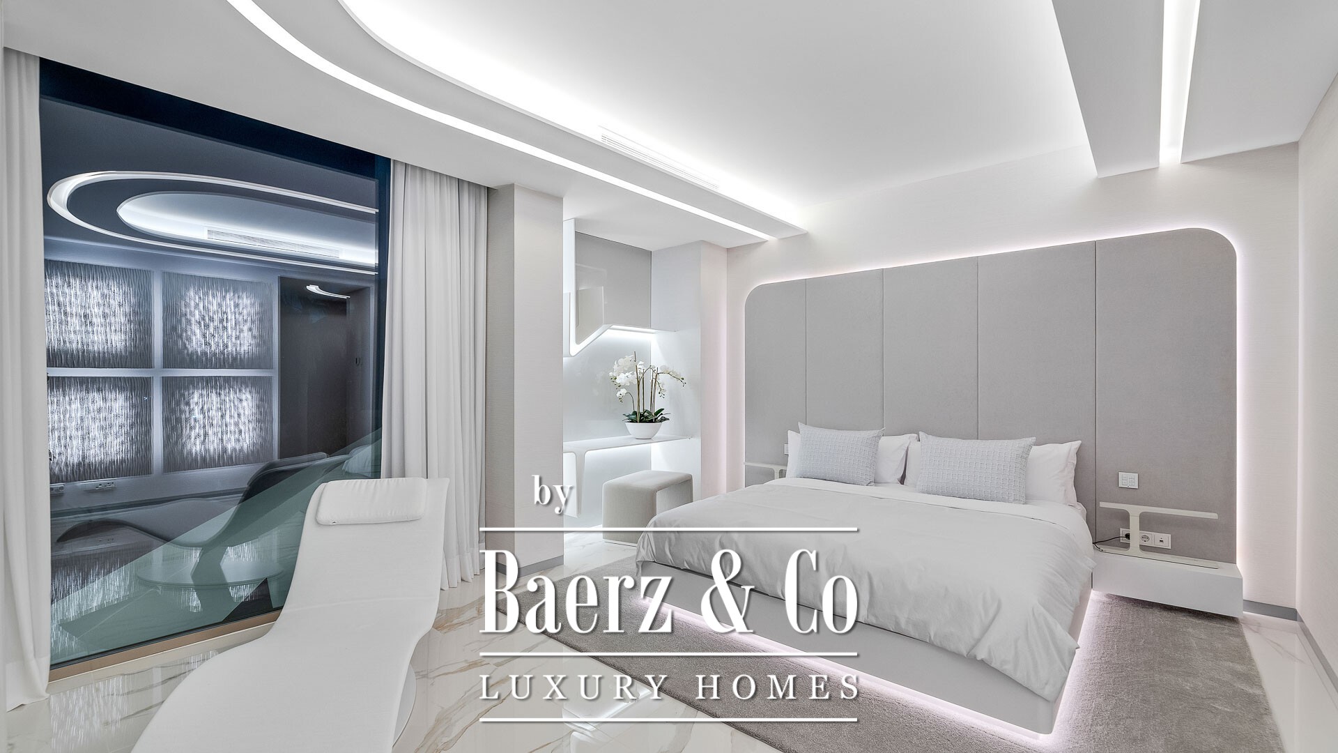 На верхнем этаже три спальни с ванными комнатами выходят к морю и завершаются мастер-сьютом впечатляющих размеров и приватности. На крыше предусмотрена терраса с бассейном-джакузи и зонами отдыха, открывающими панорамные виды от Африки до залива Марбельи. Теплый пол, система «умный дом» и круглосуточная охрана обеспечивают комфорт и конфиденциальность высочайшего уровня. Развлечения мирового класса, роскошный шопинг и исторический центр Марбельи расположены в нескольких минутах, закрепляя статус виллы в числе наиболее востребованных объектов в мире.
