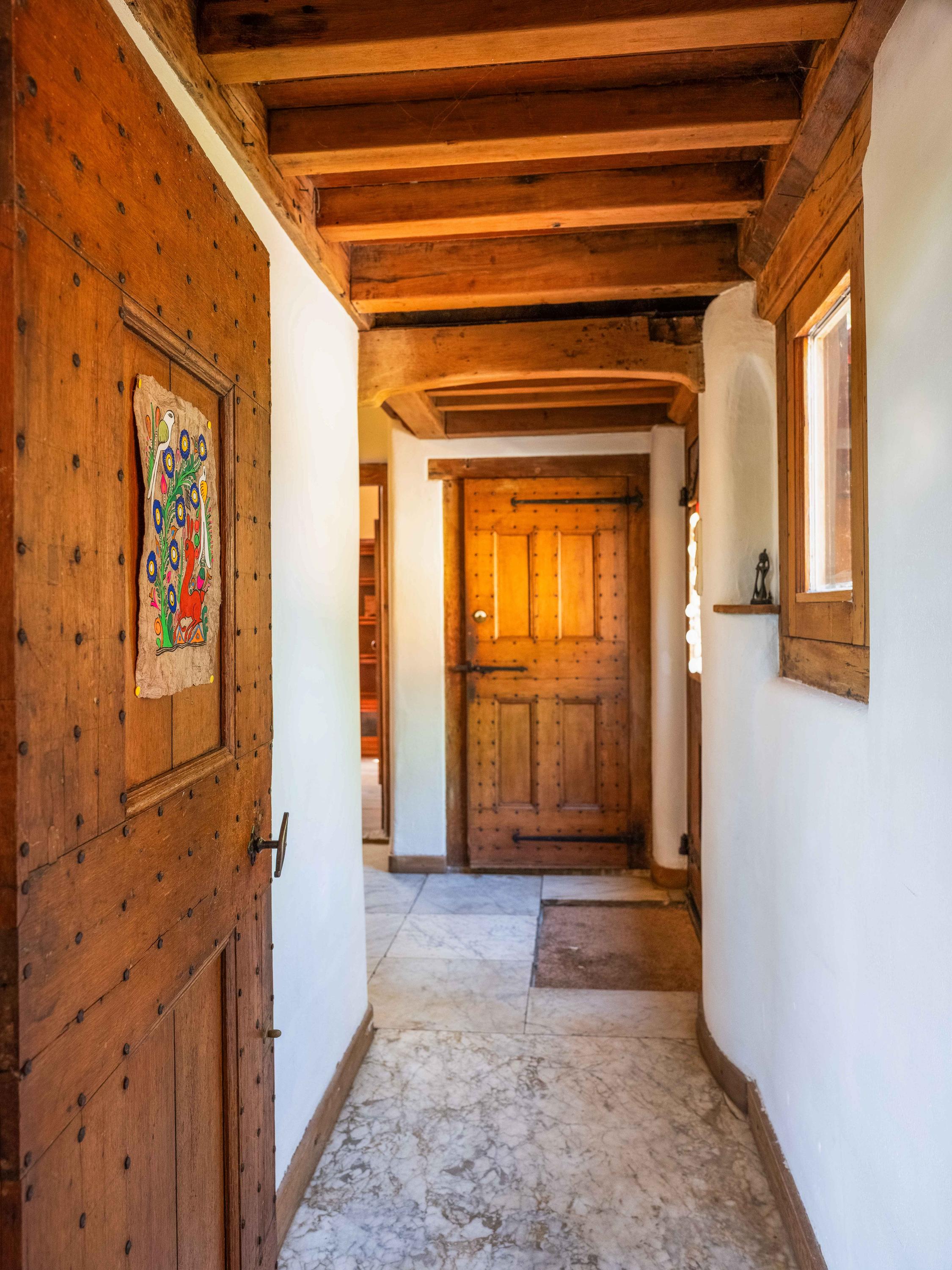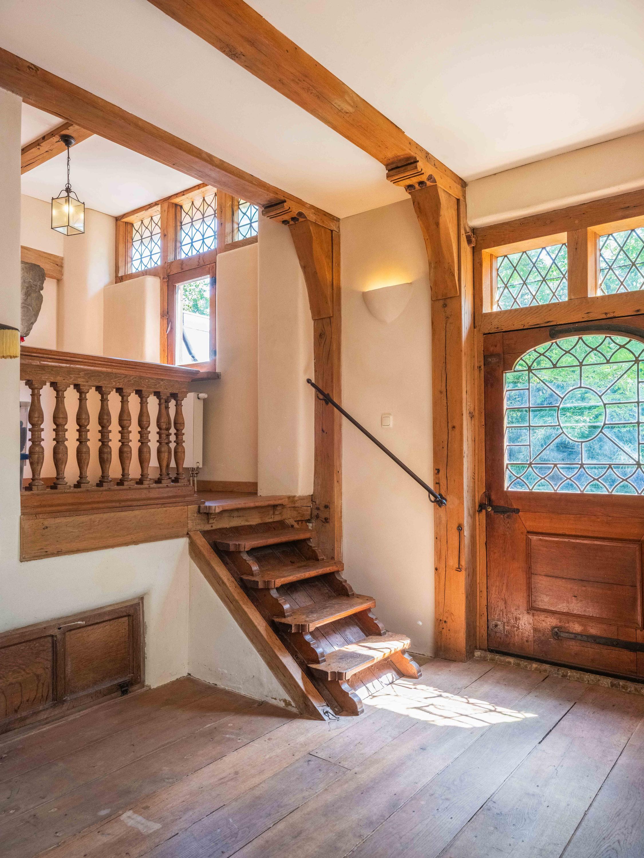 Главный дом построен с использованием материалов XVII века, что подчеркивают массивные камины, открытые дубовые балки, стены из глины и просторные дубовые полы. Щедрая жилая площадь 273 м² открывает укромные уголки и залитые светом комнаты, среди которых гостиная с видом на сад и камином, уютная передняя гостиная с приподнятой нишей и примыкающий кабинет с видом на участок, способствующий сосредоточенности. Современные удобства органично сочетаются с историей, в числе которых ванная с отделкой таделакт и отопление от центральной системы.