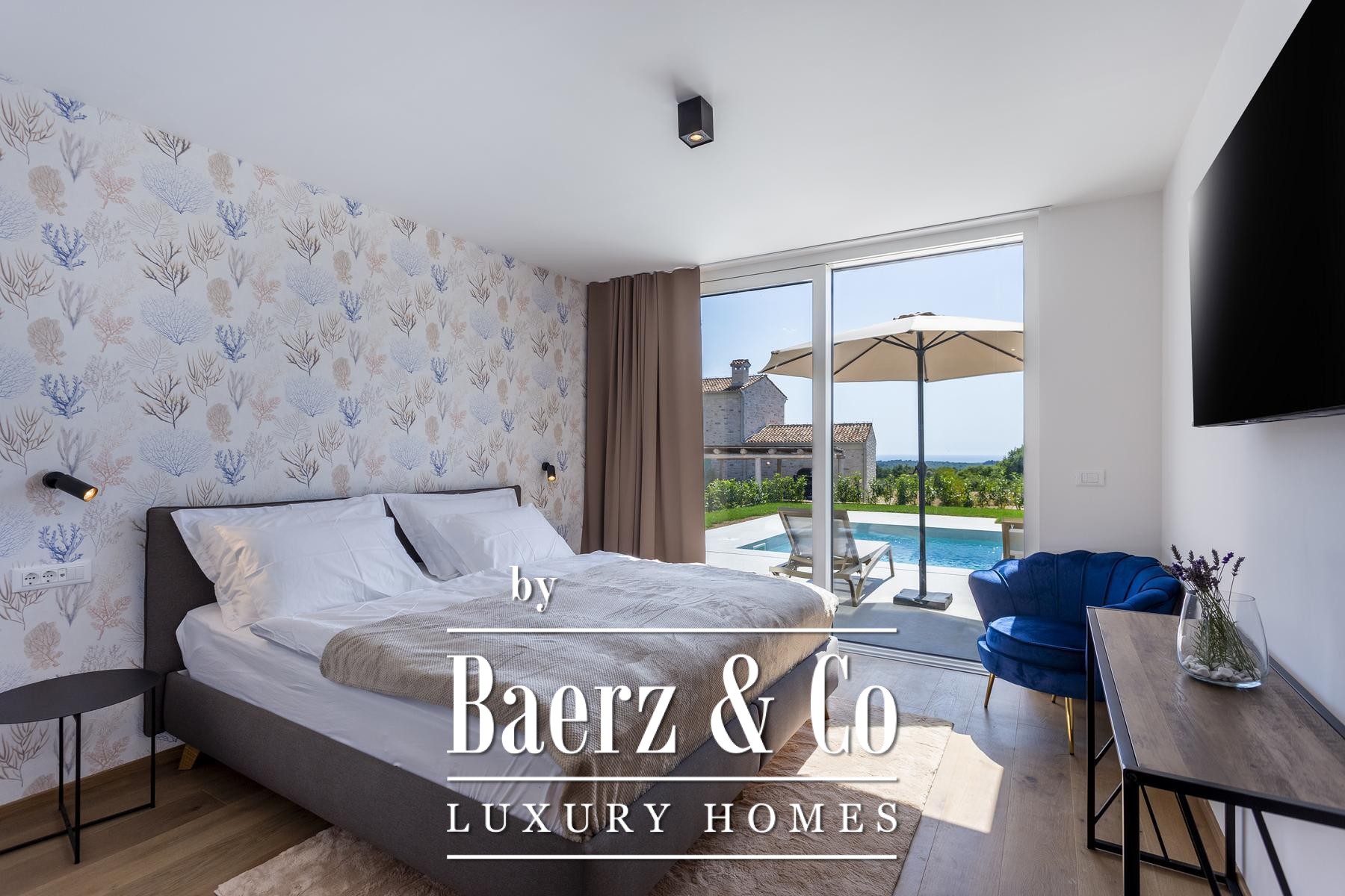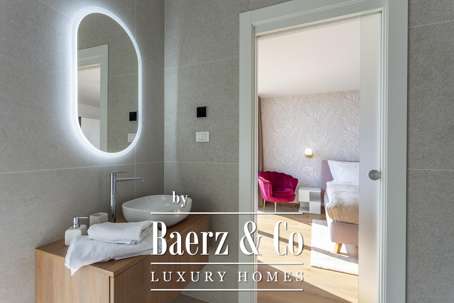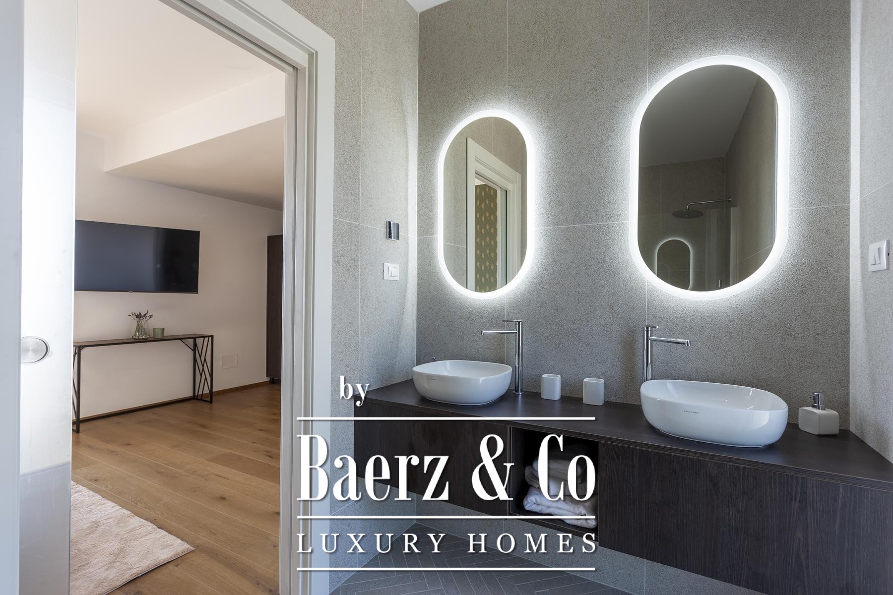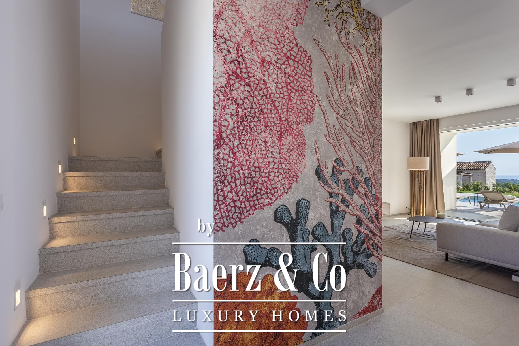 底层的私人区域包括带套间浴室的卧室、技术间和储藏室。拾级而上,二楼设有三间额外卧室,均为套间,并可通往宽大的露台,俯瞰亚得里亚海,由此为未来安装按摩浴缸预留了空间。全屋采用地暖、优质实木地板与高等陶瓷,结合每一处空间独立空调系统,提升整体生活品质。