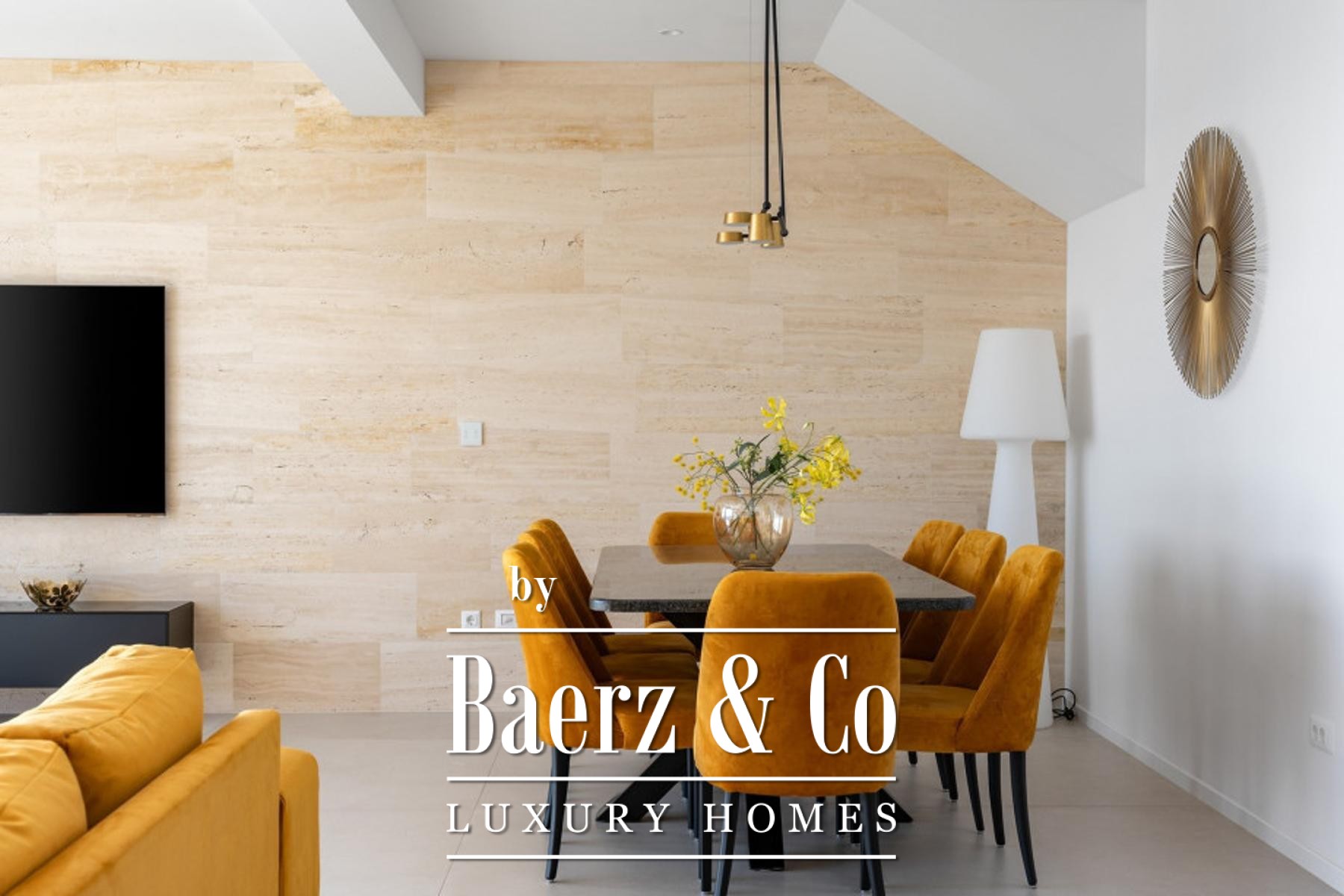 Jesenice, a modern semi-detached villa with a beautiful sea view. It extends over three floors, with a net usable area of 222 m2. It consists of an open-concept living room, kitchen and dining room, 3 bedrooms, 2 bathrooms and one toilet, as well as a beautiful terrace with a swimming pool and a sunbathing area.The large kitchen with dining room and living room have direct access to the terrace through large sliding walls.It has 2 parking spaces.The villa was built to the highest technical standards, including smart home technology, underfloor heating, air conditioning and electrically operated roller shutters.Completed in 2023, it is fully furnished and equipped and is being sold as such.The advertised price refers to the purchase of the villa with the company that owns it.Other information on request