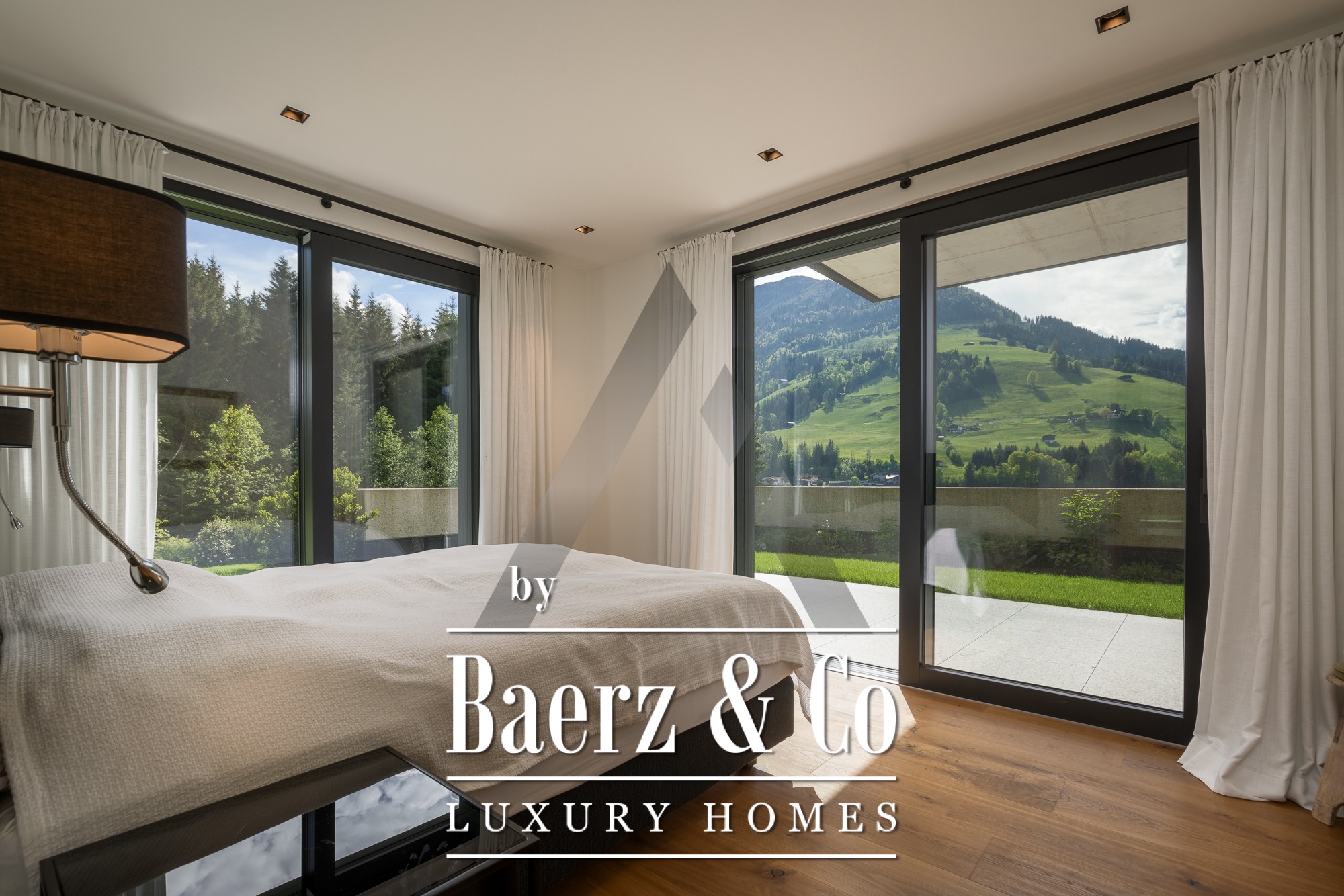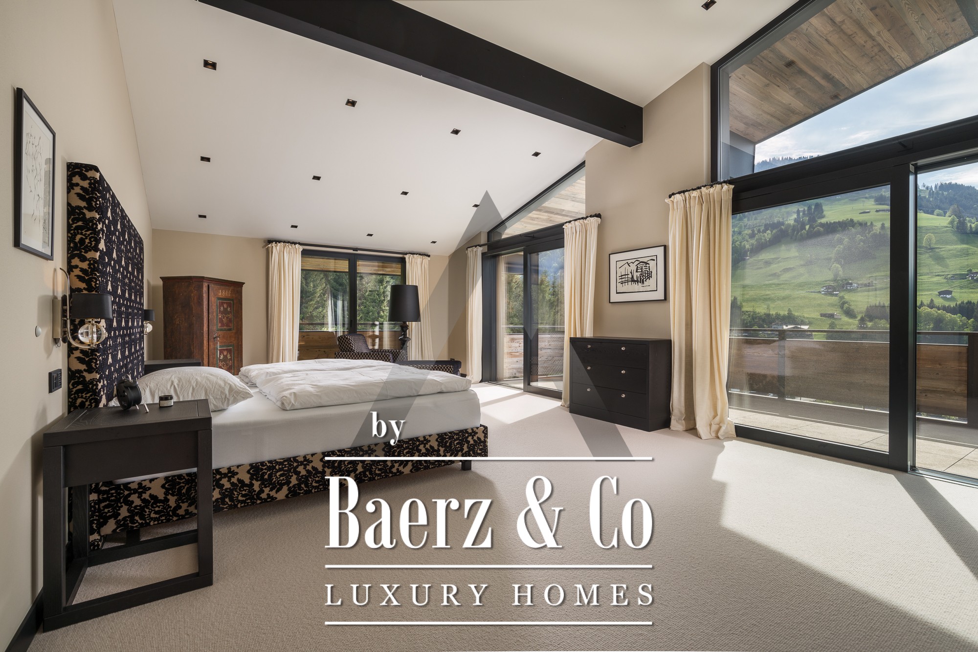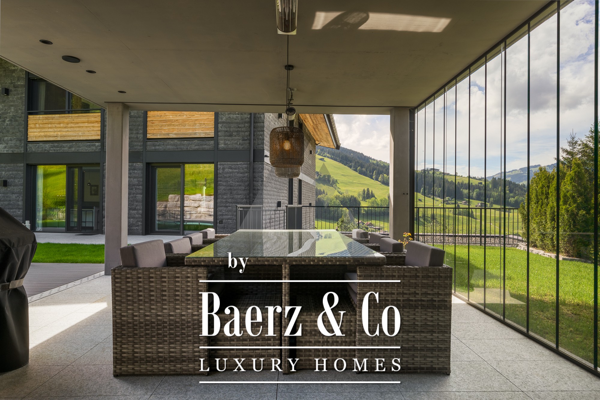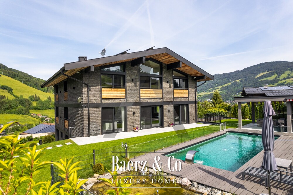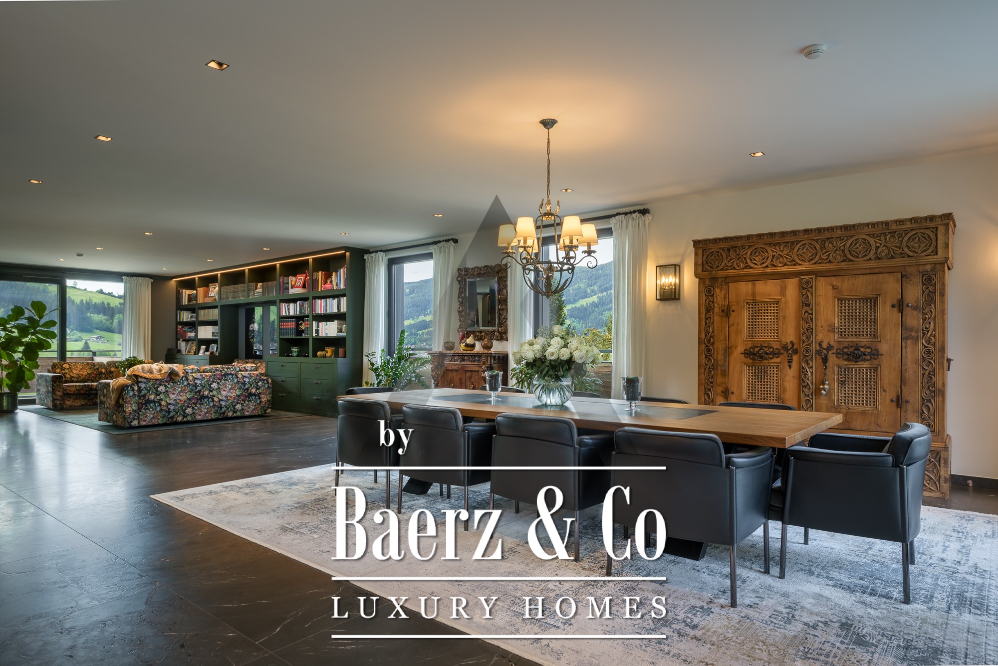 This unique home is in a very sunny and quiet location on the outskirts of Kirchberg, on an approx. 1,971m² lot. The property borders on meadows and forests to the south and east, and there are only two neighbors below in the north and west. The view extends from Gaisberg over the Hohe Salve and Kirchberg to the Kitzbüheler Horn.