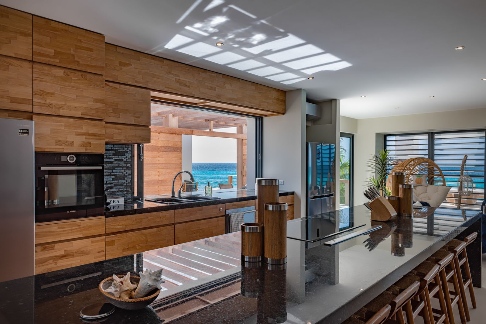 Kralendijk海滨别墅坐落于宁静的南海岸线,直通加勒比海,尽享沉浸式海洋美景。别墅采用现代建筑风格,线条简洁,落地玻璃窗引入丰富自然光,内饰色调低调而雅致,使海景视野通透无碍。步入家中,阳光滑过抛光混凝土地面,搭配温润木质点缀,营造出安宁而恒久的氛围。