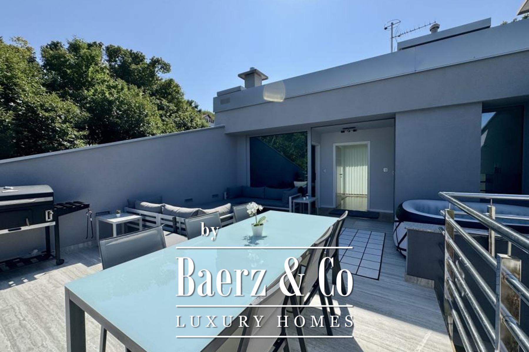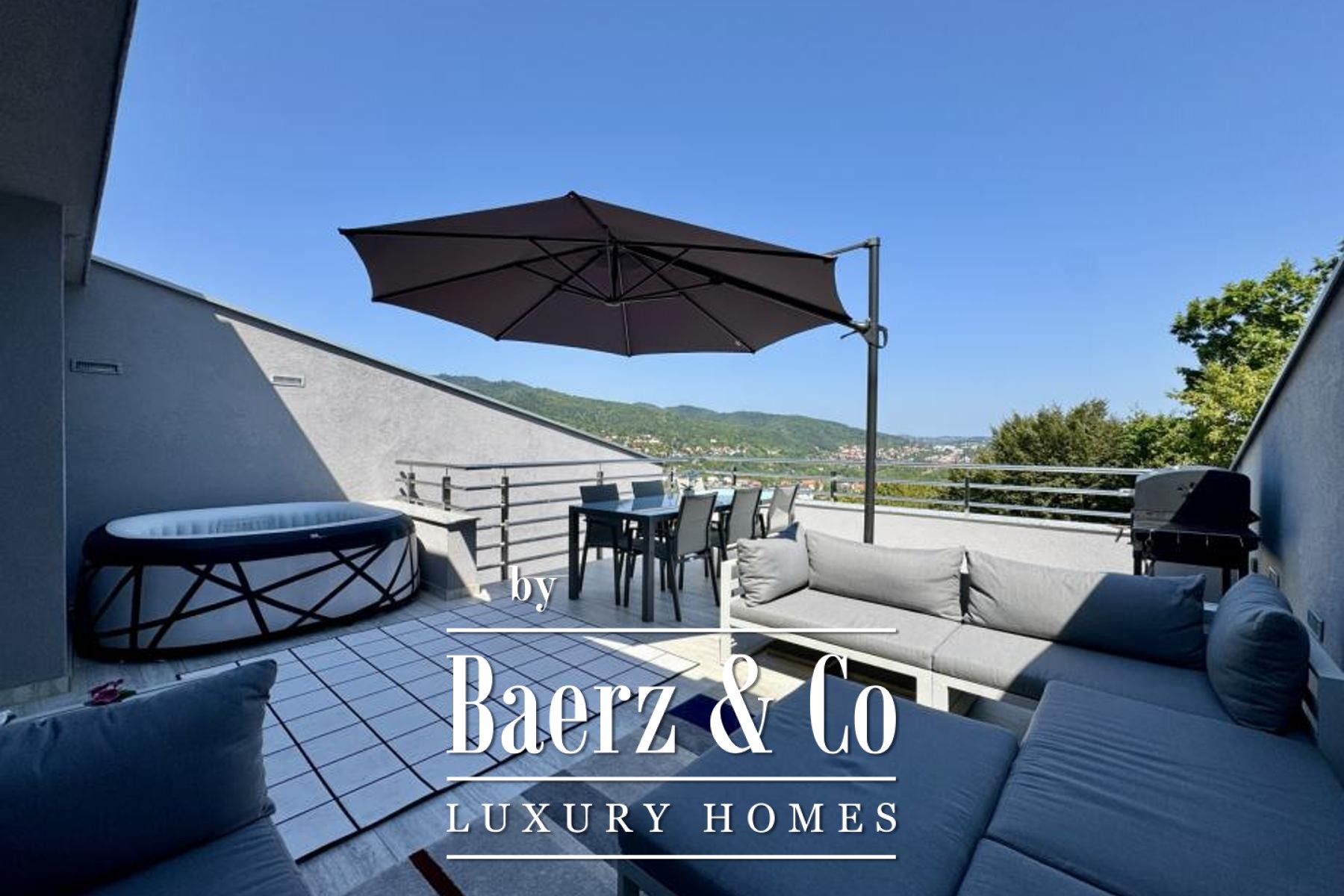 Zagreb, Šestine, luxurious apartment on 4 floors located on one of the most prestigious addresses in the Podsljeme zone with a total of 323 m2 of living space and 823 m2 of land in a newly built building from 2010It consists of 4 floors:Ground floor (85 m²): private entrance with windscreen, hallway, internal staircase, duplex garage, storage room, laundry room with toilet, additional room (possibility of arrangement as a home cinema, fitness, spa/wellness or wardrobe)First floor (85 m²): three bedrooms, one with private bathroom (shower), additional bathroom (shower); each room with its own terrace, air conditioning and electric shutters - view of the greenerySecond floor (84 m²): spacious living room with large glass walls and access to the terraces, kitchen with covered terrace, bathroom with bathtub - panoramic viewThird floor (69 m²): Bedroom with covered terrace, bathroom (shower), 40 m² roof terrace with jacuzzi and spectacular view of Sljeme and north/east of ZagrebThe outdoor area consists of its own land with a garden and parking spaces with a total area of 823 m and a wide parking lot with space for up to 5 vehicles.The apartment has undergone renovation, which includes a new roof, new facade, new Italian ceramics on the terraces, new lighting, sensors and sockets on the exterior surfaces, new air conditioners (Daikin)The apartment is located in a prime location in a quiet cul-de-sac with a panoramic view of Zagreb. It is full of natural light that enters through floor-to-ceiling glass walls in every room, while multiple terraces and a spacious 40 m2 roof terrace with a jacuzzi provide a unique living experience.We are at your disposal for any additional questions.