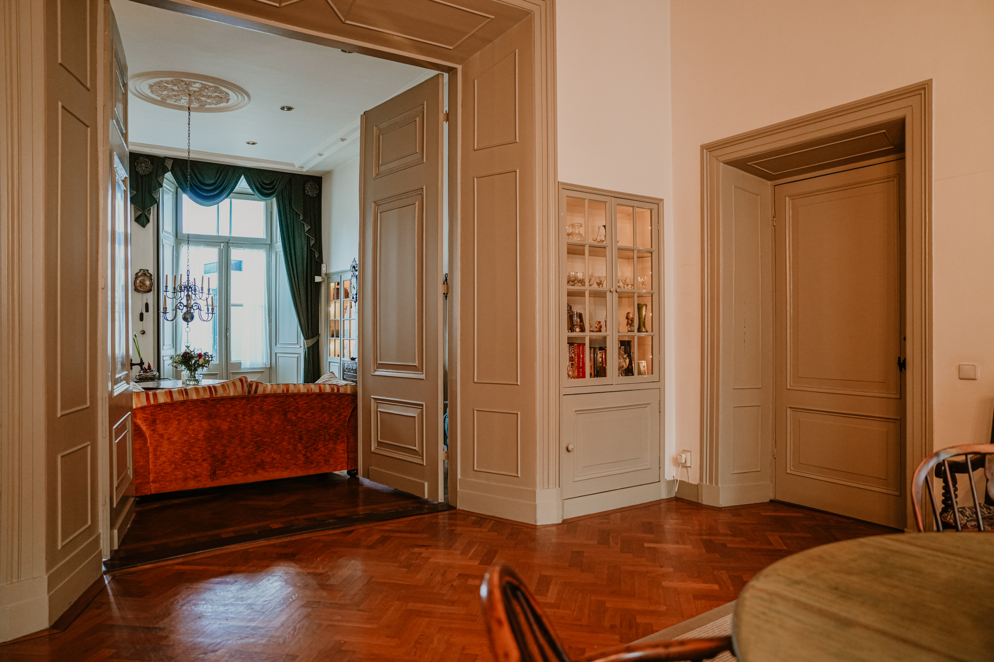 一条双层中世纪拱顶酒窖贯穿住宅全深处,为整栋楼的故事奠定基础。入口门厅采用大理石地面,延伸至天然石材铺设的走廊,宏伟格调由此开启。高天花板石膏线条、彩色玻璃、天然石壁炉与鱼骨拼木地板彰显稀有的历史完整性。底层设有70平方米客厅,法式门直通私密城市花园,厨房则面朝露台和低矮绿篱。窗台座椅、百叶窗和十八世纪水泵等时代细节,带来触手可及的文化印记。